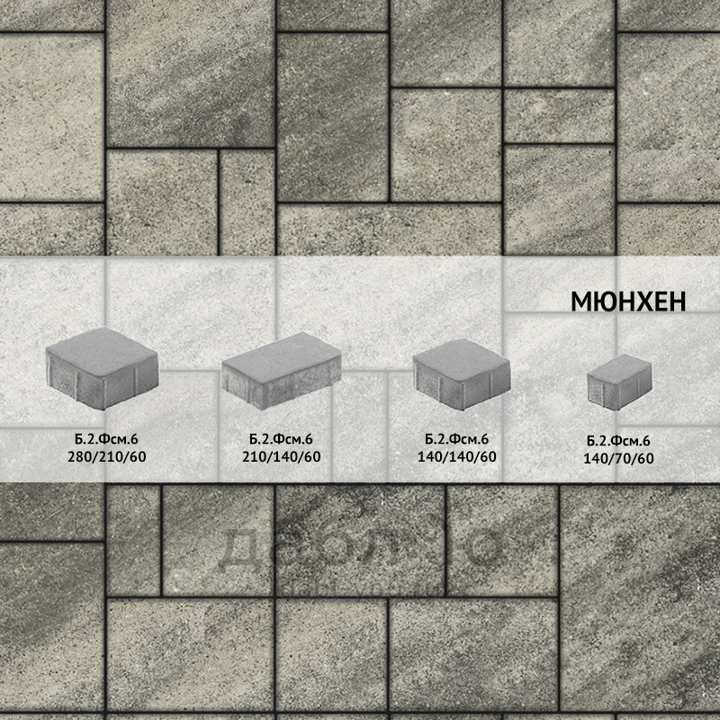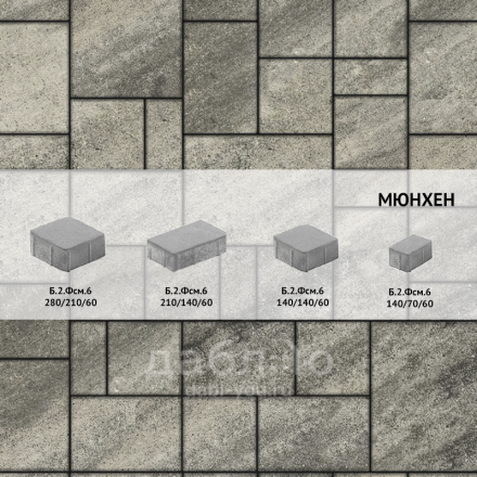 Брусчатка Выбор Мюнхен Листопад Б.2.Фсм.6 Антрацит. Мультиформатная форма «Мюнхен» включает комплект из четырех камней разных размеров. Рисунок не имеет выраженной направленности, подходит как для мощения площадок, так и узких, криволинейных участков, без необходимости прерывания сплошной укладки.Толщина, мм: 60
