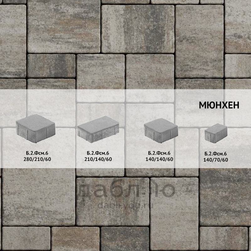 Брусчатка Выбор Мюнхен Листопад Б.2.Фсм.6 Песчаник. Мультиформатная форма «Мюнхен» включает комплект из четырех камней разных размеров. Рисунок не имеет выраженной направленности, подходит как для мощения площадок, так и узких, криволинейных участков, без необходимости прерывания сплошной укладки.Толщина, мм: 60