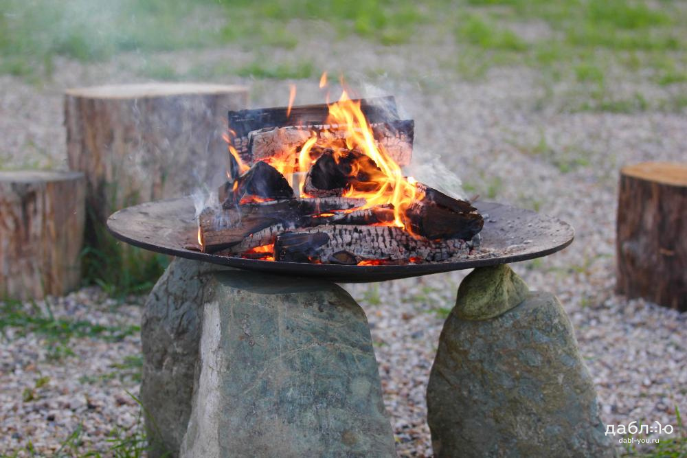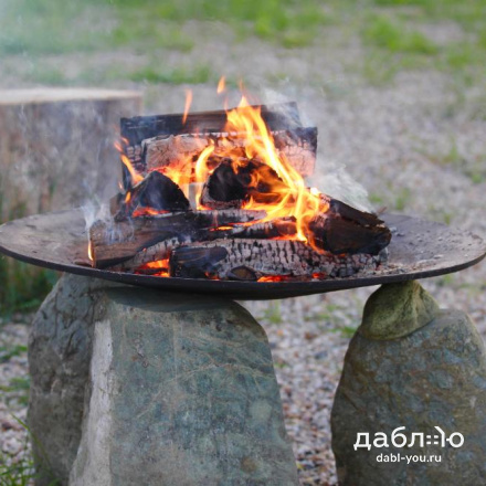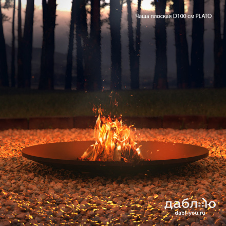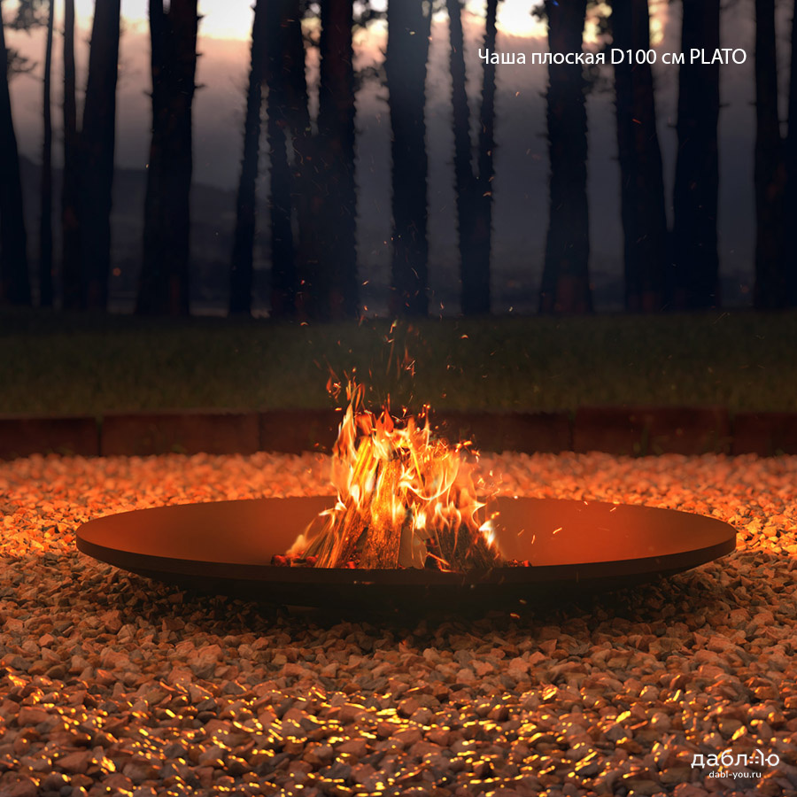 Чугунная чаша Concretika Plato A100. Очаги этой серии подходят для больших территорий, но за счет разнообразия оснований остаются универсальными. Благодаря плоской форме очага, зольник не требуется – остатки горения – угли и пепел легко удаляются небольшим совком или щеткой. Чаши серии PLATO больше выступают как элемент декора, готовить на них неудобно.Материал: чугун