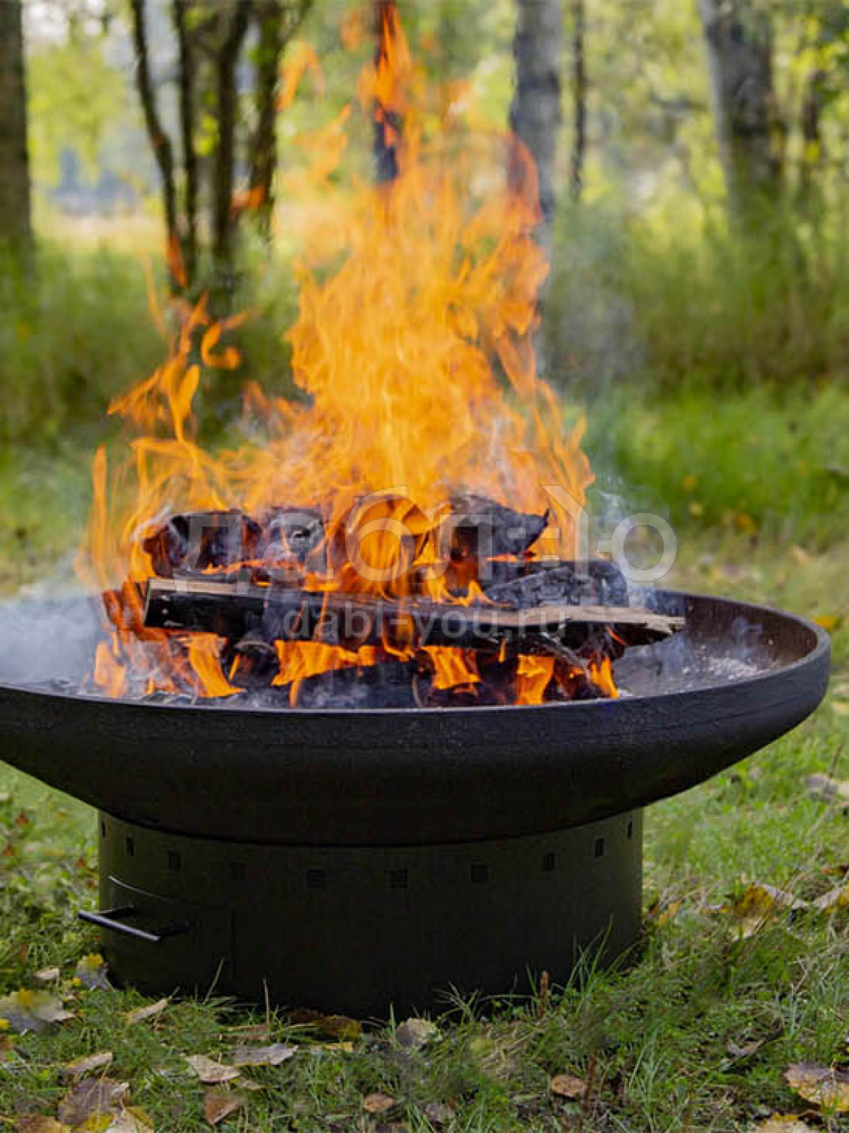 Чаши D-серии на металлическом основании - простое, но очень популярное решение в скандинавских странах.Металлическое основание для чаш D-серии выдерживает вес до 300 кг, что позволяет использовать тяжелые костровые чаши, например чугунные. Поверхность основания покрыта черной порошковой термостойкой матовой краской.