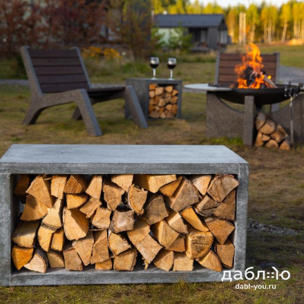 Дровница бетонная Concretika DR90. Дровницы сделаны в единой стилистике с подставками для чаш. Материал изготовления - фибробетон. Дровницы покрыты защитным составом, который позволяет использовать дровницы дома и на улице круглогодично.Материал изготовления - фибробетон