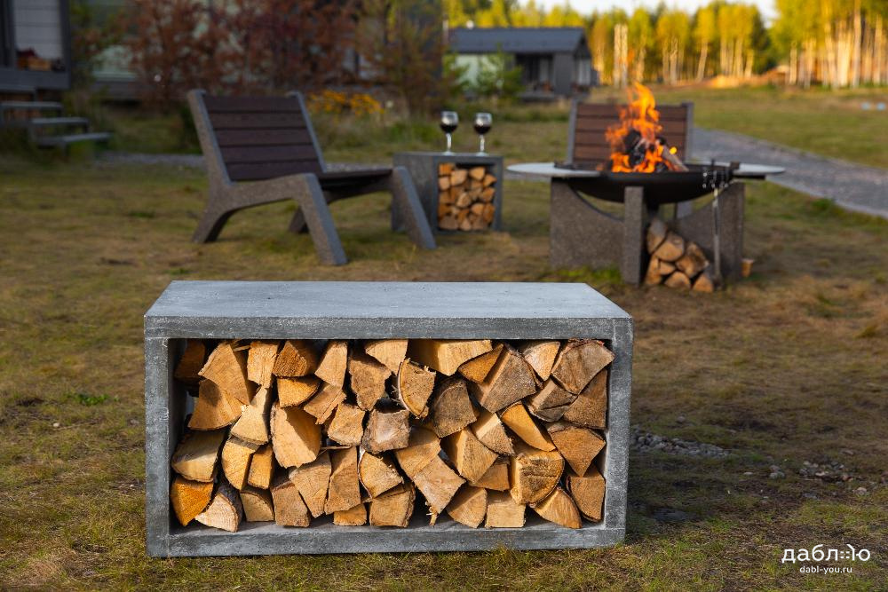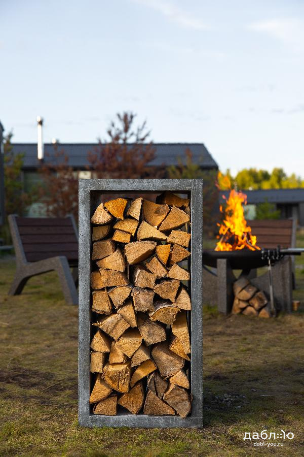 Дровница бетонная Concretika DR90. Дровницы сделаны в единой стилистике с подставками для чаш. Материал изготовления - фибробетон. Дровницы покрыты защитным составом, который позволяет использовать дровницы дома и на улице круглогодично.Материал изготовления - фибробетон
