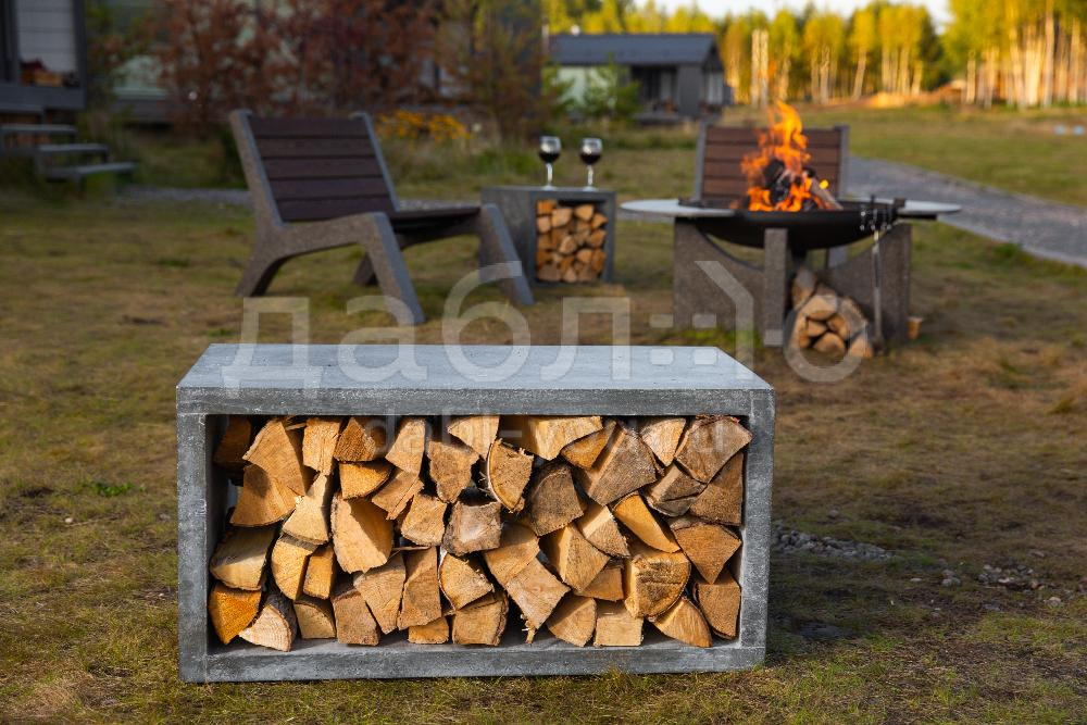 Дровница многофункциональна – может использоваться одновременно и как место для хранения дров, а также как сиденье, столик или элемент декора или для зонирования пространства.Высота: 90 см