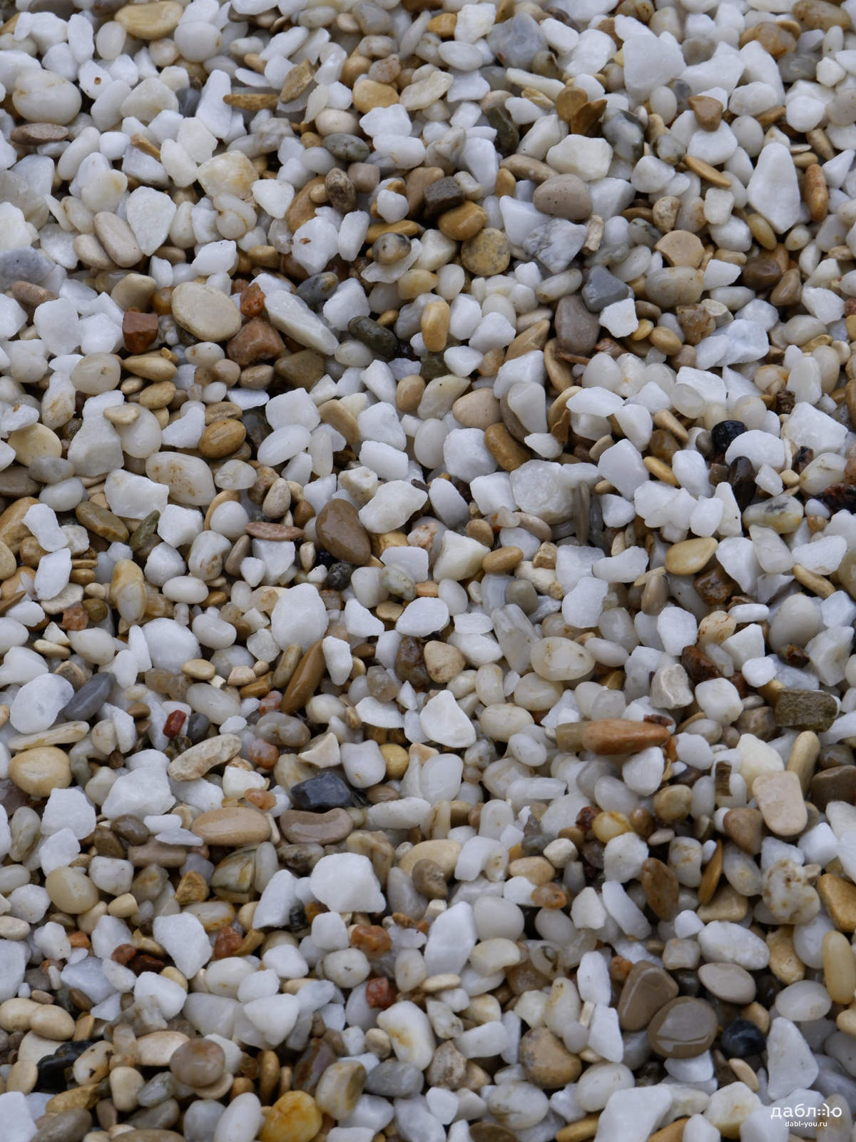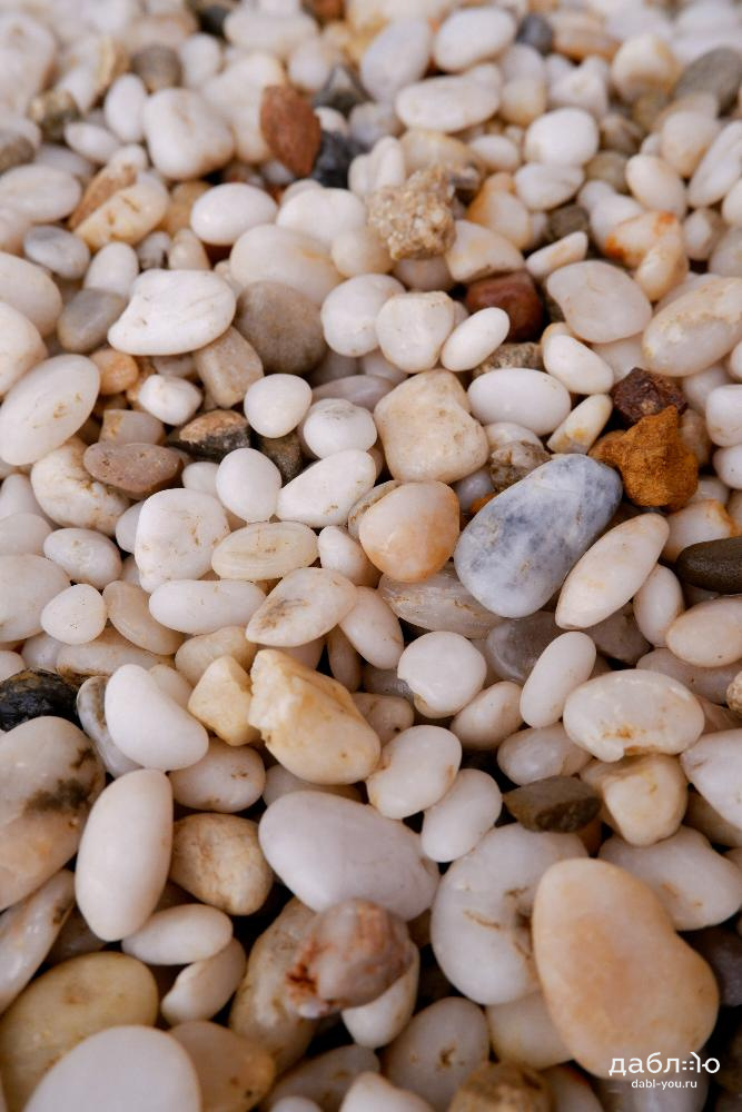 Галька Жемчужная 10-30 мм. Прекрасная галька в бело-желтоватых оттенках из Крыма. Можно комбинировать с гальками других цветов и фракций, создавая красивые мозаики и рисунки у вас дома.