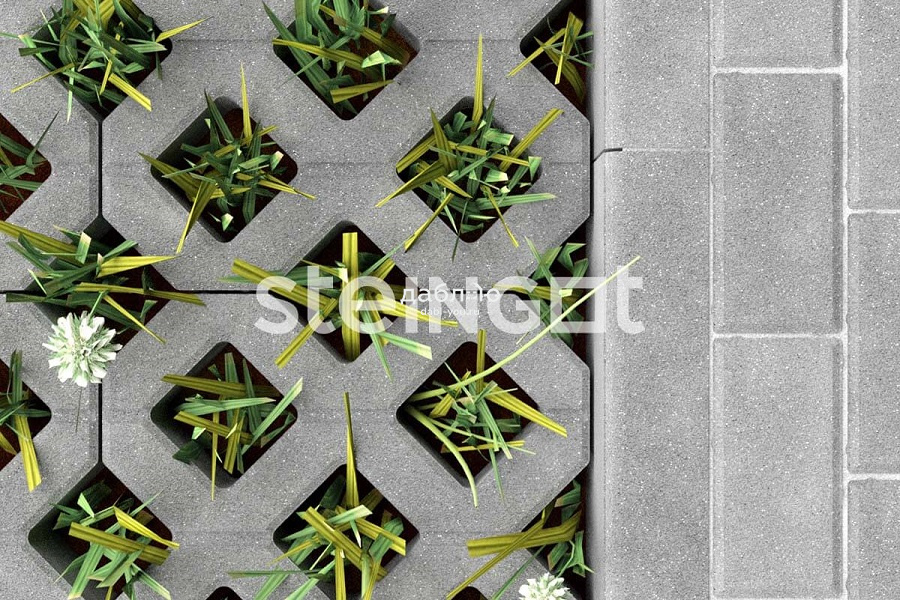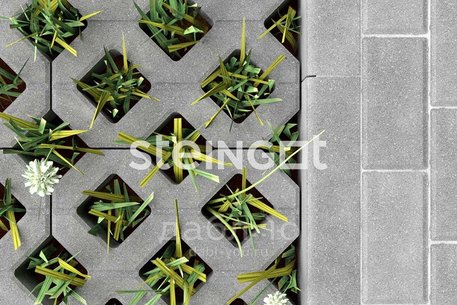 Газонная решетка Steingot серая. Бетонная газонная решетка имеет простую ячеистую форму и используется для мощения парковок, въездов, создания эко-зон ("зеленых парковок"). Продажа производится кратно целым поддонам!- Высота: 100 мм