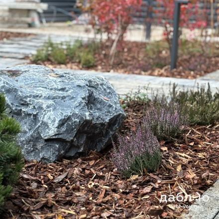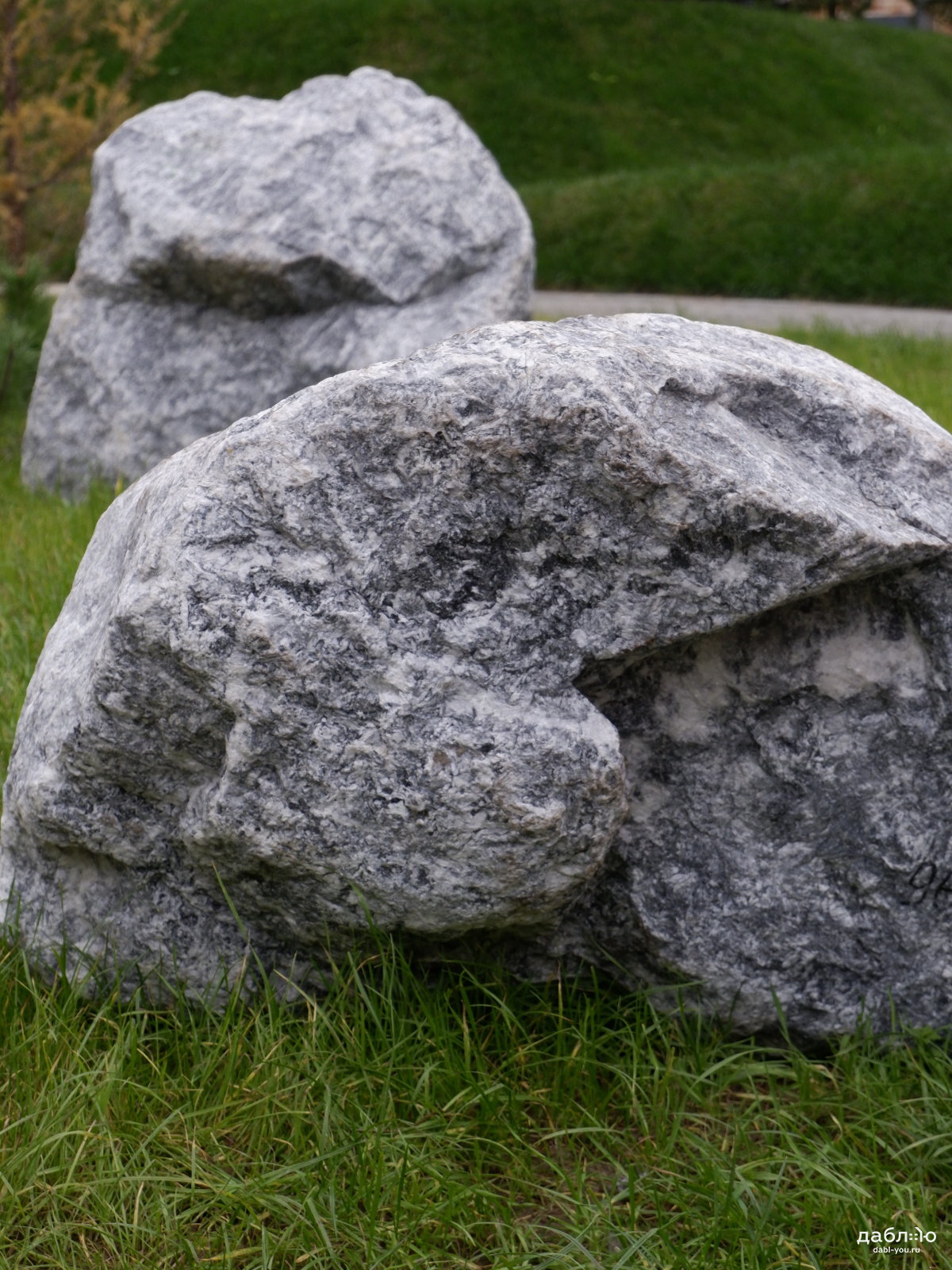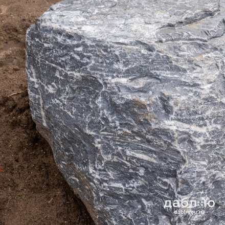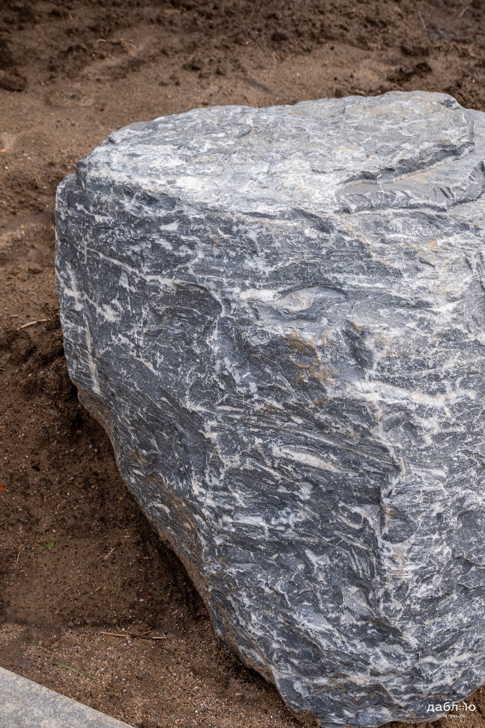 Глыба Долматин темный с белыми полосами. С помощью данного материала создаются цветники, каменистые сады, фонтаны и многое другое. В ландшафтном дизайне глыбы отлично сочетаются с каменной крошкой и применяются как в виде ландшафтных композиций из нескольких камней, так и в качестве отдельных объектов.Область применения: ландшафт