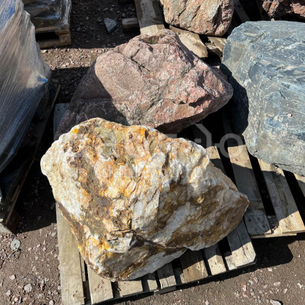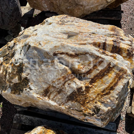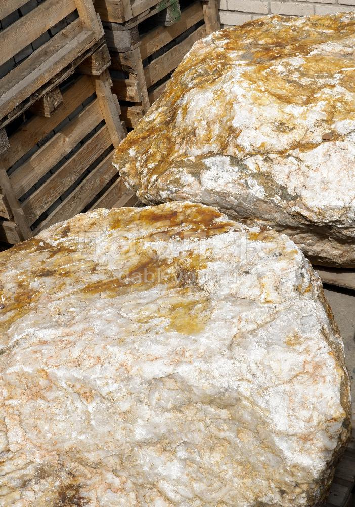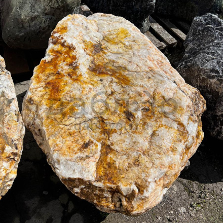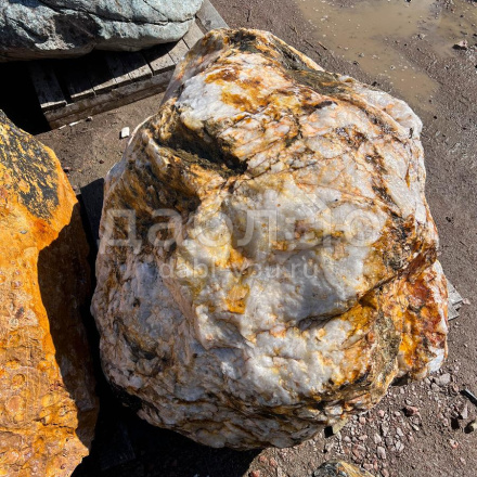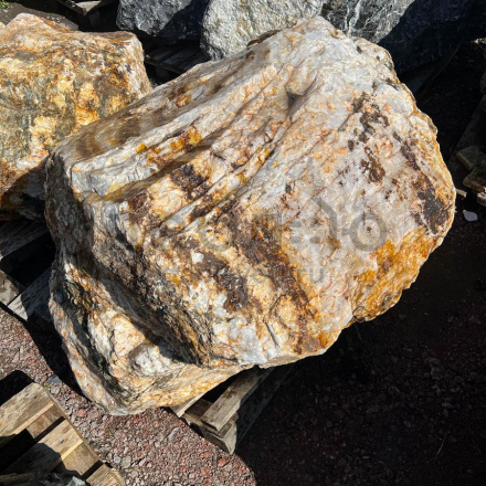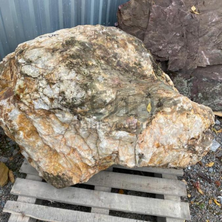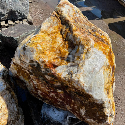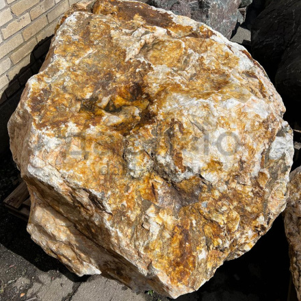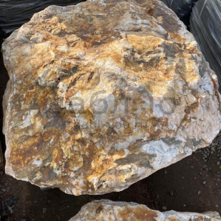Глыба кварц с золотом, с характерной кристаллической структурой и золотистыми вкраплениями, создающими эффект блеска. Используется для эксклюзивных декоративных проектов.Область применения: декоративное оформление, интерьер, ландшафтный дизайн