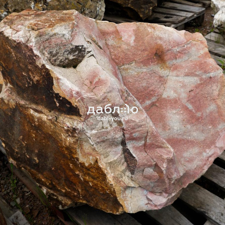 Глыба розовый кварцит, с насыщенной цветовой палитрой от розового до бордового, фактура рваная, местами кристаллическая. Эффектно смотрится как акцентный элемент в ландшафтных композициях.Область применения: ландшафтный дизайн