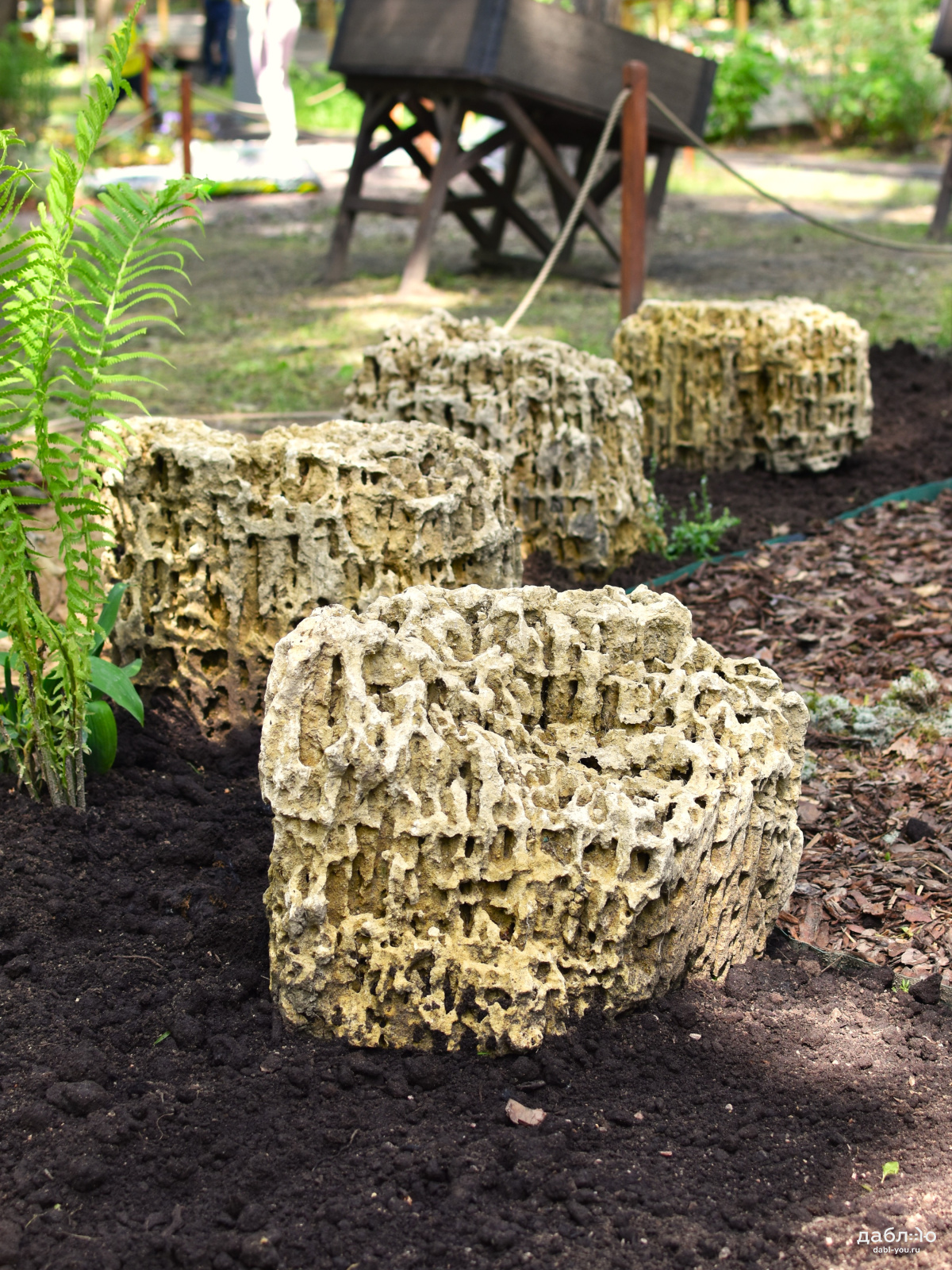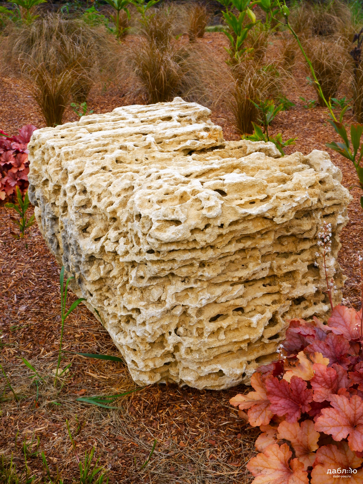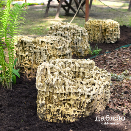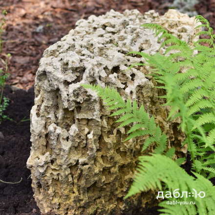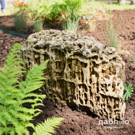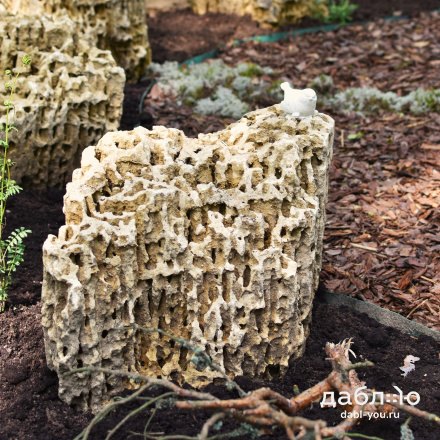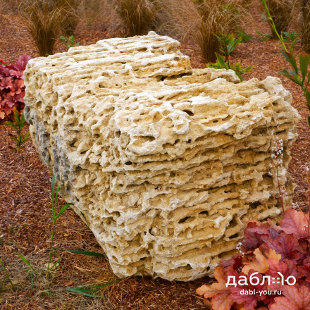 Глыба Меотис крымский. С помощью данного материала создаются цветники, каменистые сады, фонтаны и многое другое. В ландшафтном дизайне глыбы отлично сочетаются с каменной крошкой и применяются как в виде ландшафтных композиций из нескольких камней, так и в качестве отдельных объектов.Область применения: ландшафт