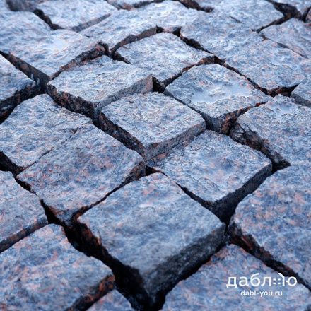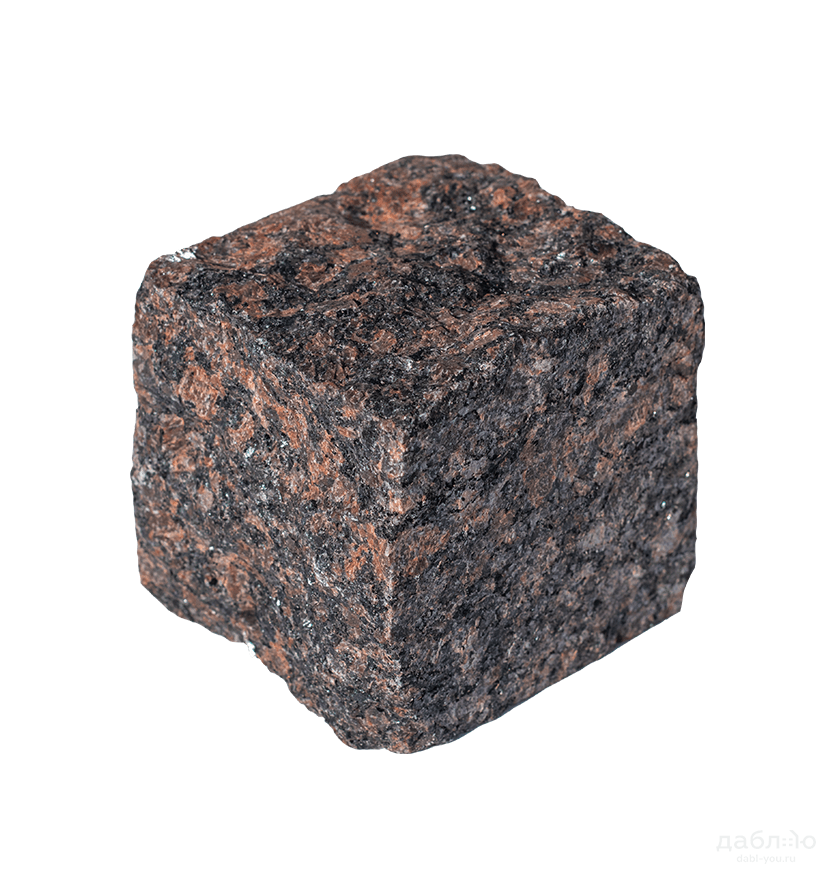Гранитная брусчатка Дымовского месторождения темно-коричневая. Все стороны брусчатки колотые. Размер 100*100*100 мм. Прочный материал, который подойдет для проезжих частей и пешеходных зон с высокой проходимостью.Все грани колотые