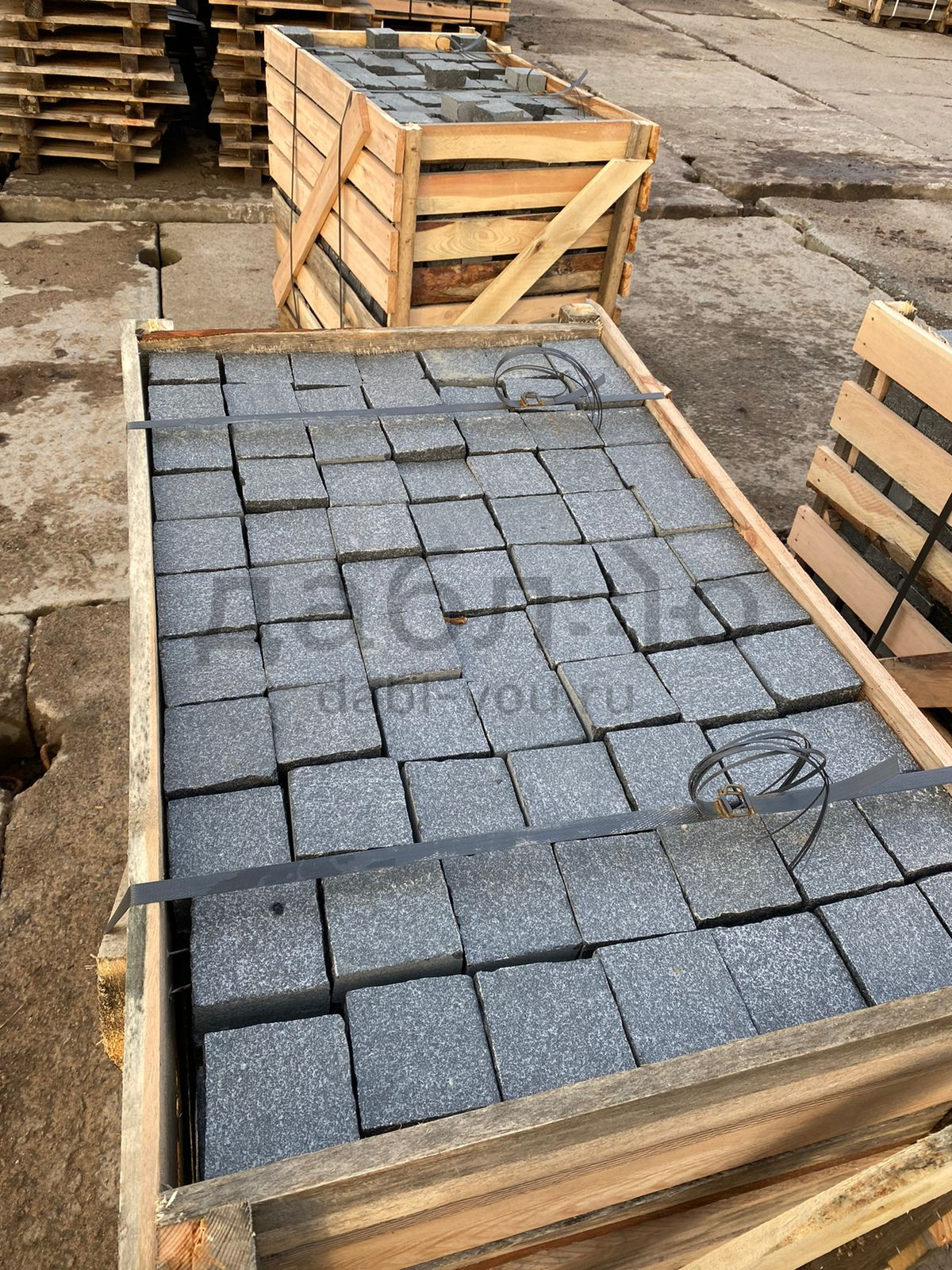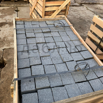Гранитная брусчатка из насыщенного черно-серого цвета. Размер 100*100*50-60 мм. Верх термообработанный, боковые грани пиленые и колотые.- Цена при отгрузке позиции со склада в Санкт-Петербурге!