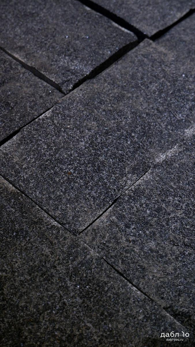 Гранитная брусчатка Габбро-диабаз пилено-колотая 100x200x50 мм (пиленые 5 граней, верх колотый). Гранитная брусчатка черного цвета применяется для мощения парковок и дорожек.- Область применения: мощение