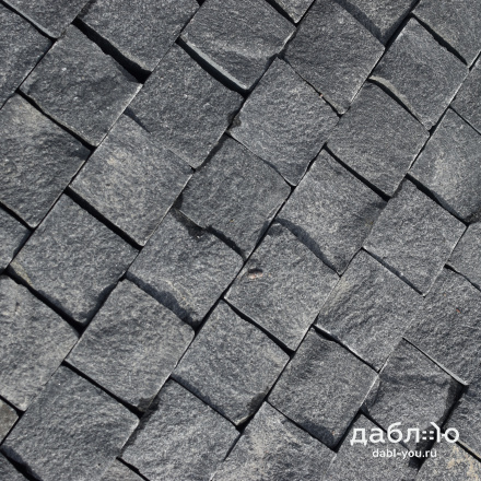 Гранитная брусчатка Габбро-диабаз пилено-колотая (боковые грани пиленые и колотые, верх колотый), 100x100x50 мм. Гранитная брусчатка насыщенного черно-серого цвета. Такая брусчатка подойдет как для частного, так и городского использования.- Область применения: мощение