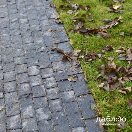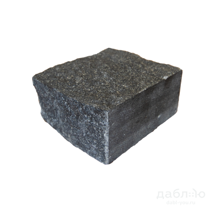 Гранитная брусчатка Габбро-диабаз пилено-колотая (грани пиленые и колотые, верх колотый), размер 100x80x50 мм. Насыщенного черно-серого цвета. Брусчатка подойдет как для частного, так и городского использования.- Область применения: мощение