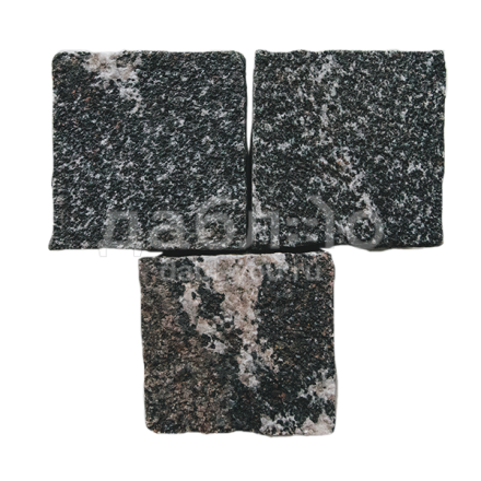 Гранитная брусчатка Гранатовый амфиболит пилено-колотая 100х100х80 мм
