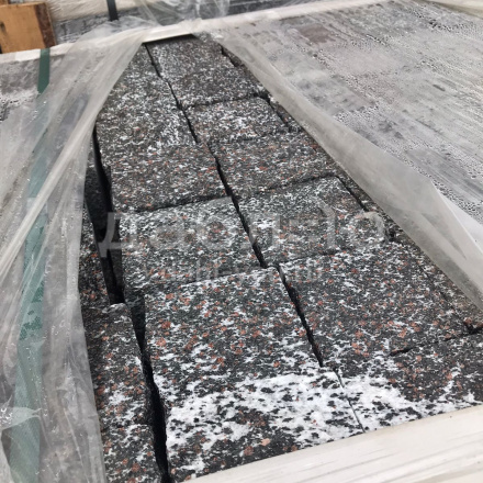 Брусчатка из серо-фиолетового гранита с белыми вкраплениями. Размер 100*100*80 мм. Верхняя грань термо, остальные четыре грани пилено - колотые. Применяется для мощения как в частном секторе, так и в градостроительстве. Остаток: 30 м.кв.- Цена при отгрузке позиции со склада в Санкт-Петербурге!
