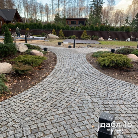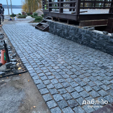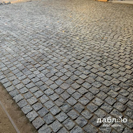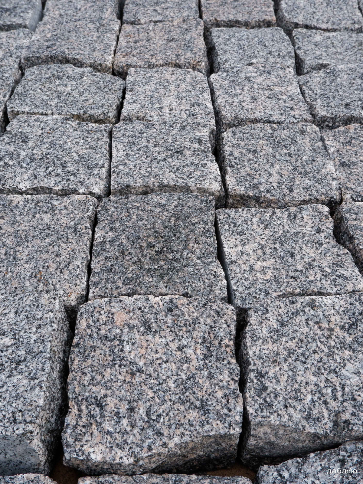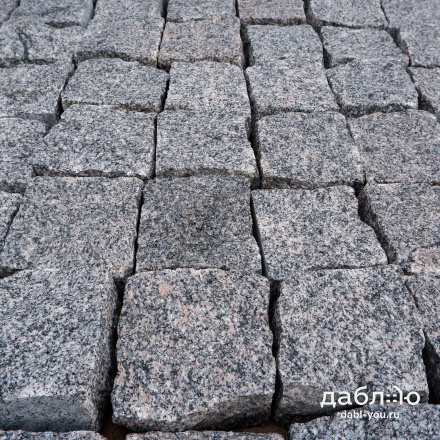 Гранитная брусчатка Каменногорская (колотая), размер 100x100x50 мм. Серая гранитная брусчатка для мощения дорожек и парковок. Морозостойкая и долговечная.- Область применения: мощение