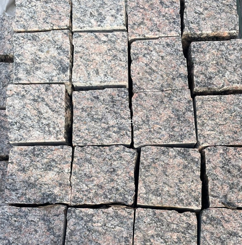 Гранитная брусчатка Ладожская пилено-колотая (верх термо) 100х100х80 мм. Применяется для мощения как в частном секторе, так и в градостроительстве.Область применения: мощение