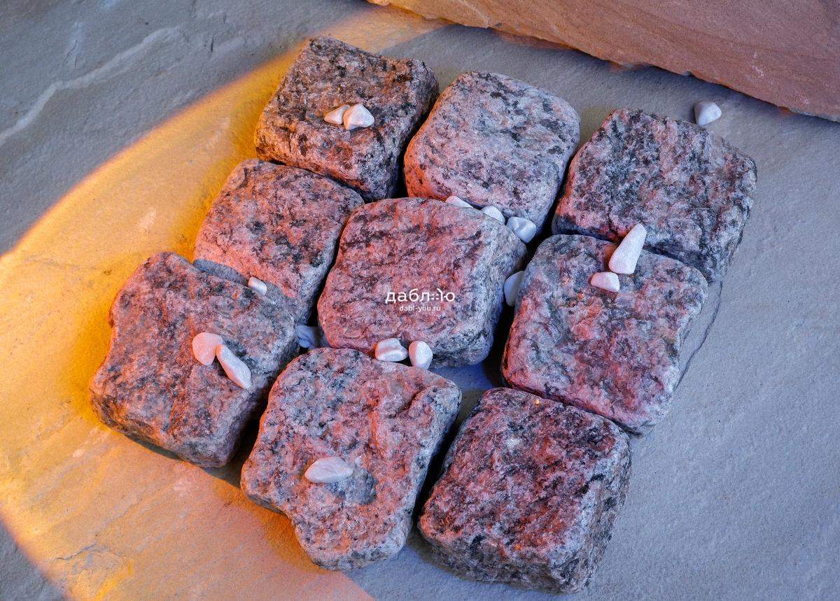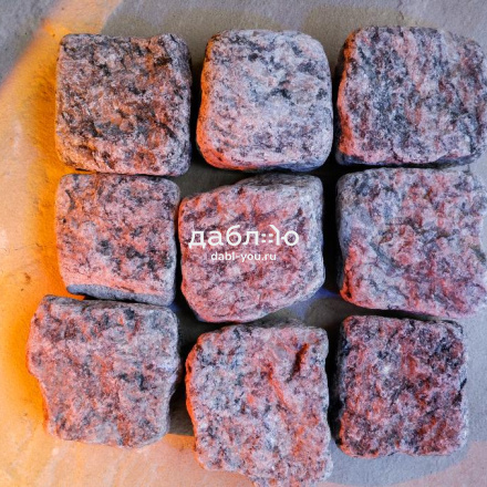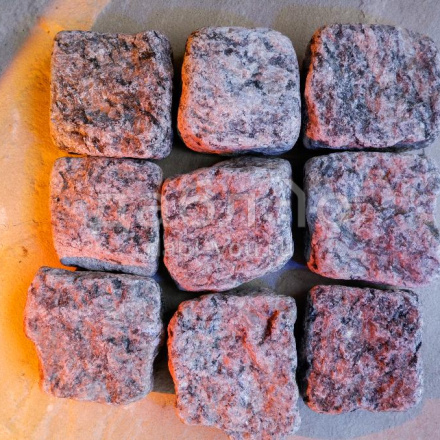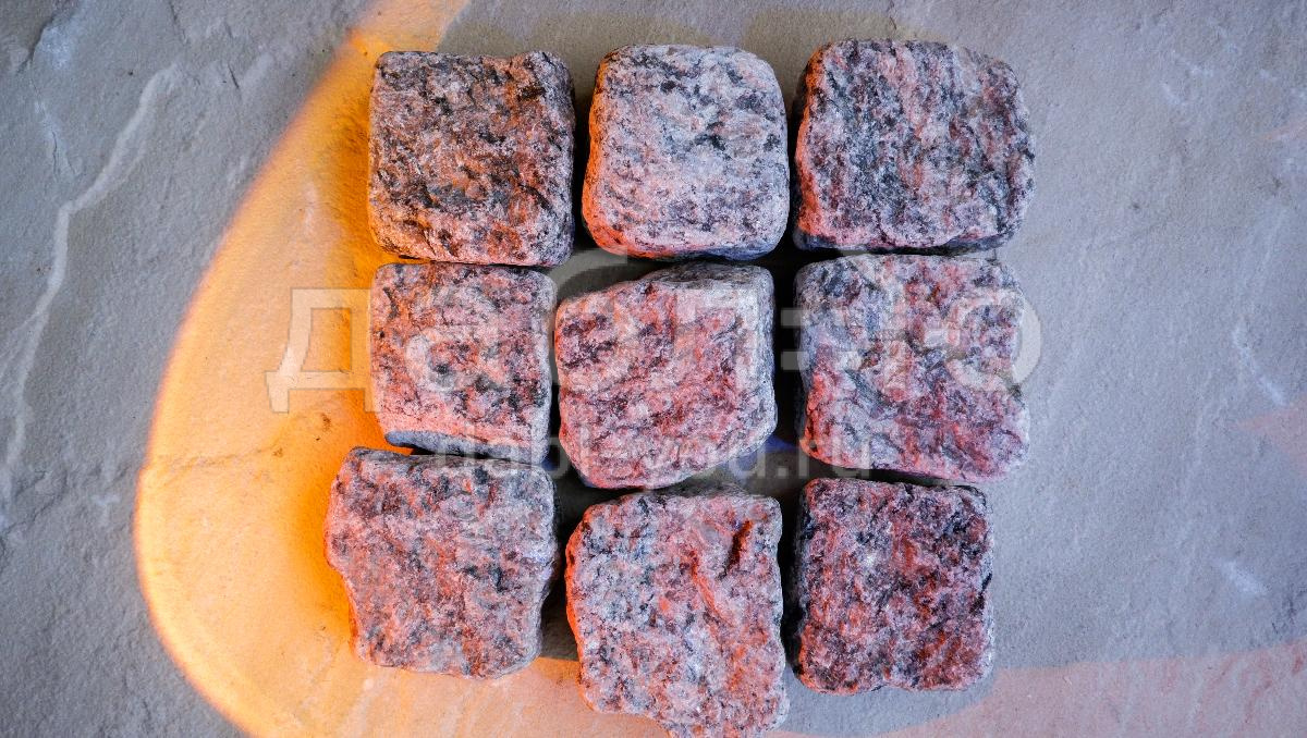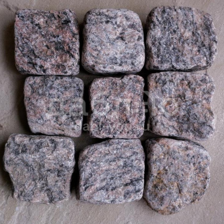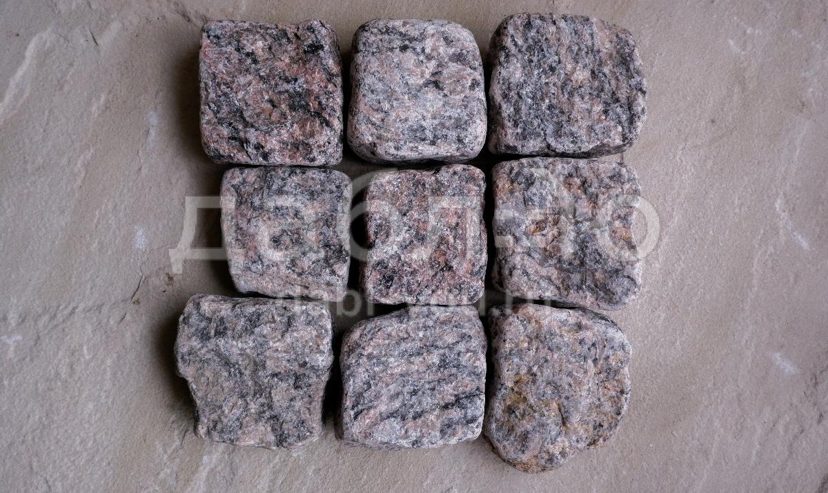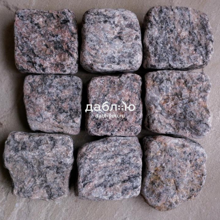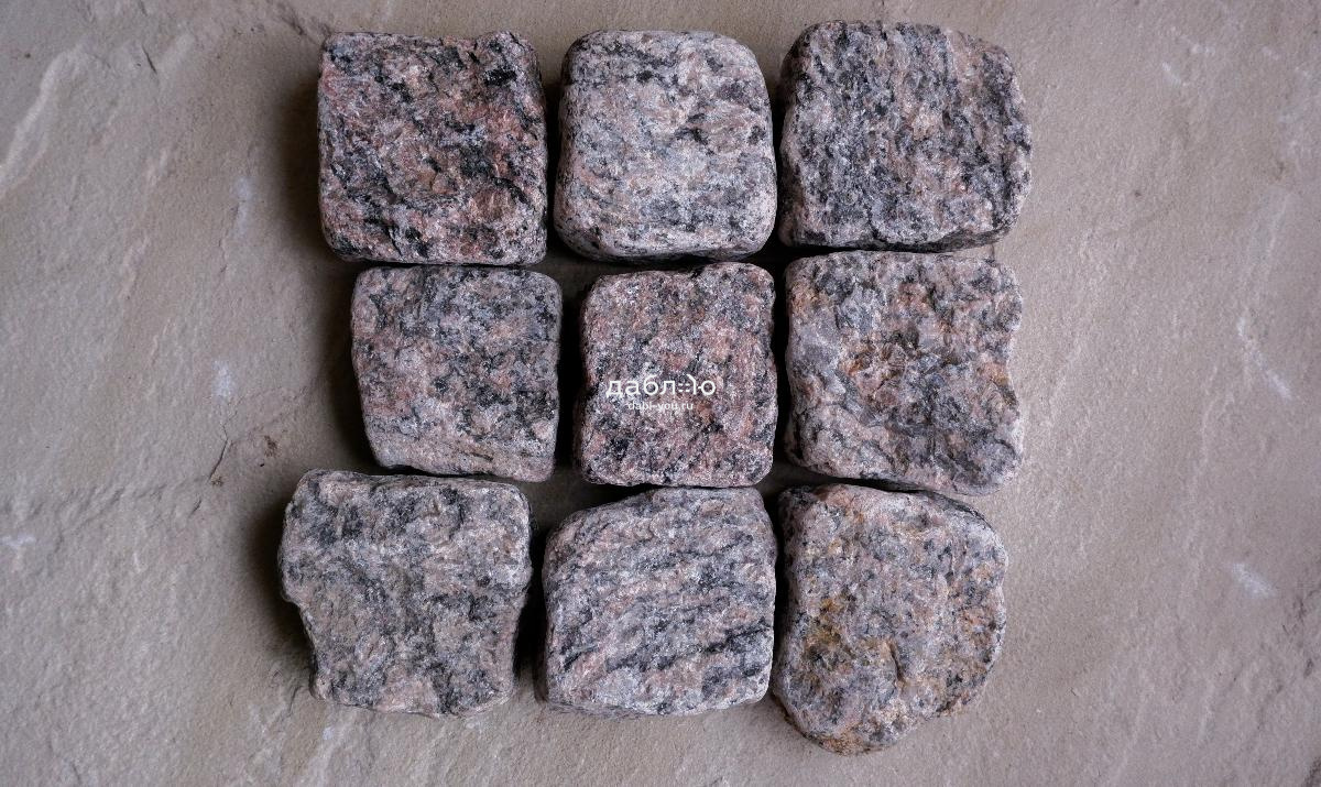 Гранитная брусчатка Ладожская серо-розовая галтованная 100x100x50 мм
