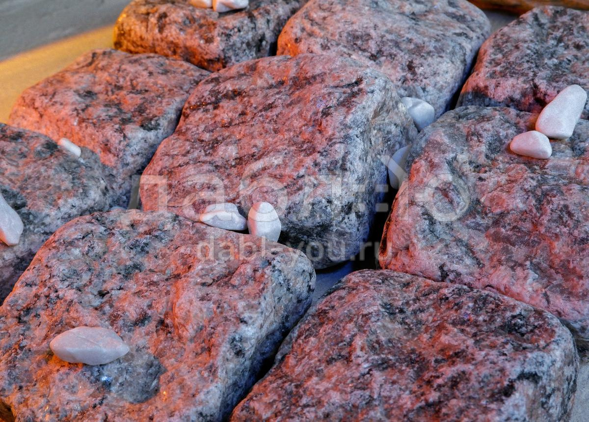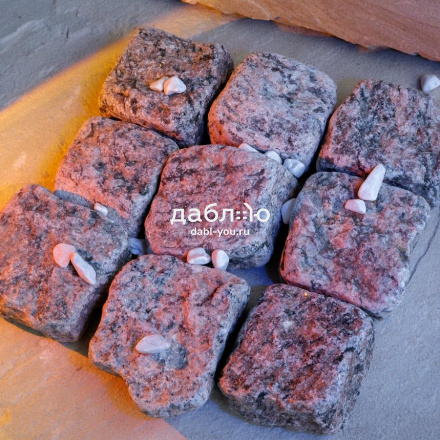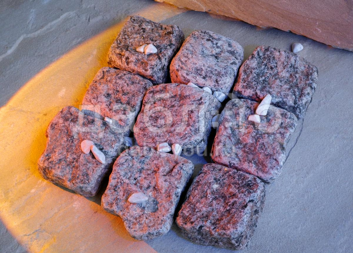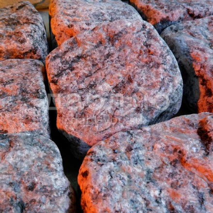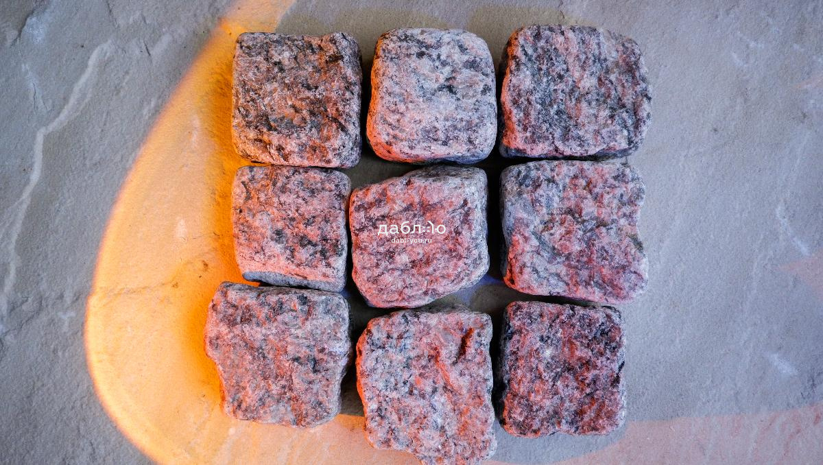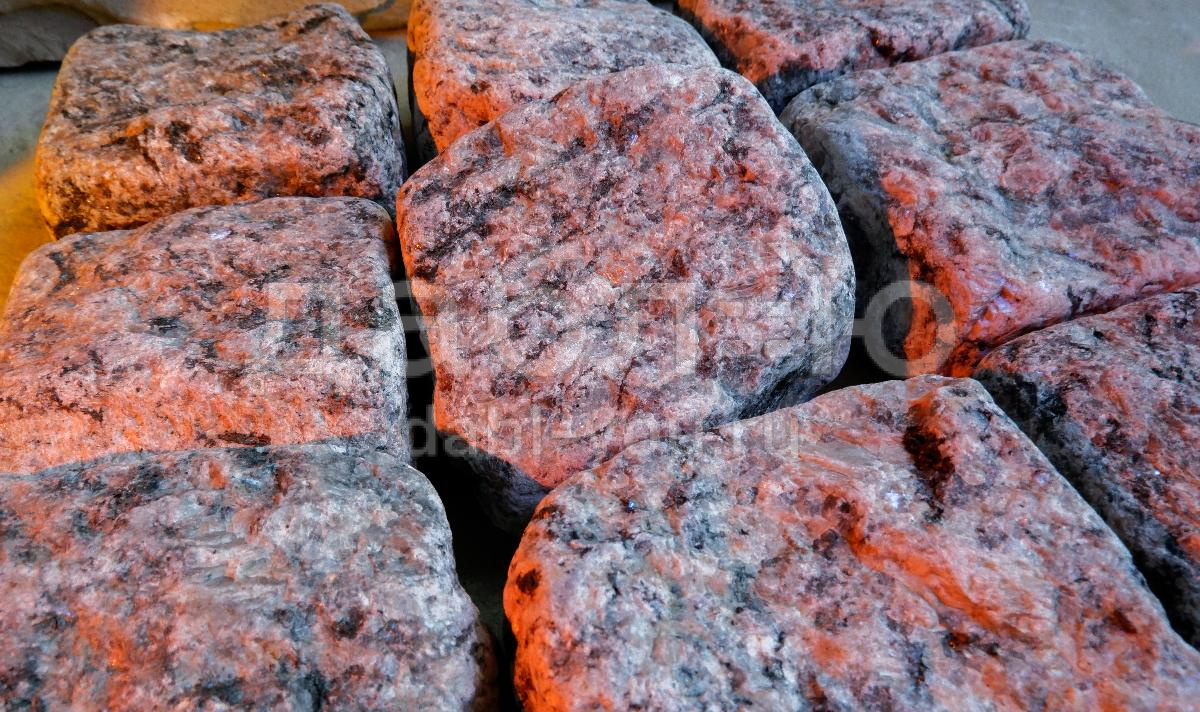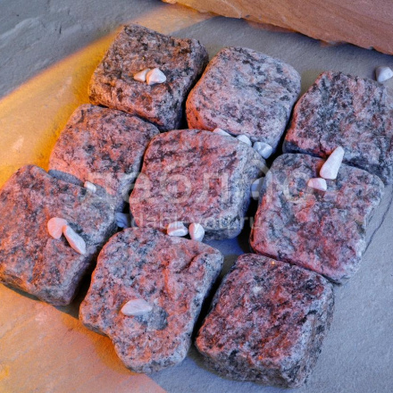 Гранитная брусчатка Ладожская серо-розовая галтованная 100x100x50 мм