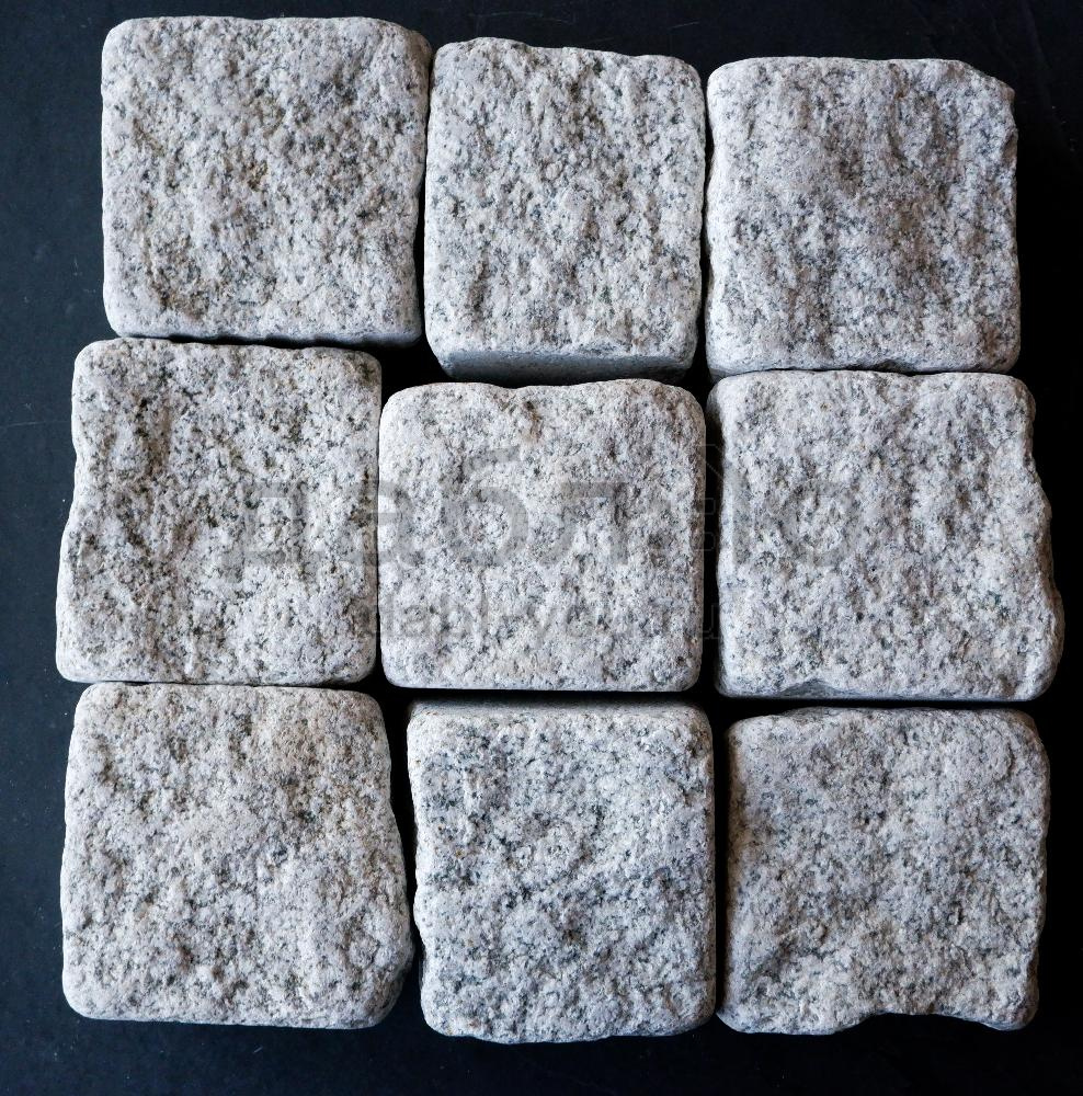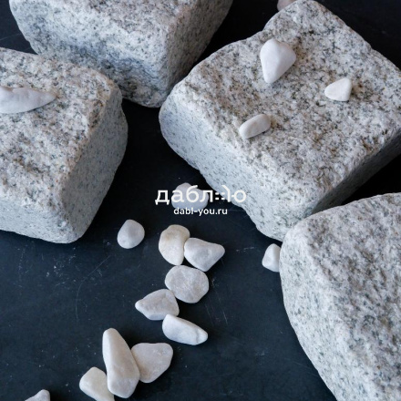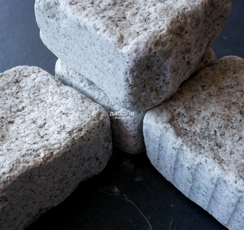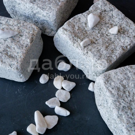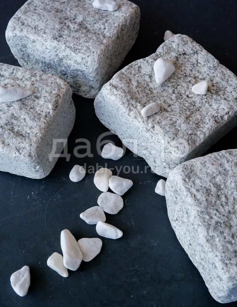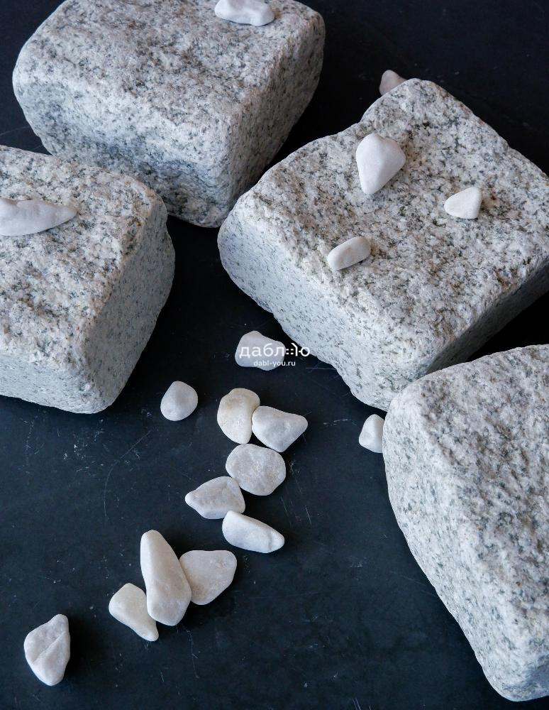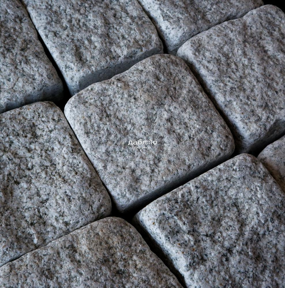 Гранитная брусчатка Мансуровская галтованная размер 100х100х50 мм. Брусчатка из белого гранита для тротуаров и парковок. Подходит для частных домов и городского мощения.- Область применения: мощение