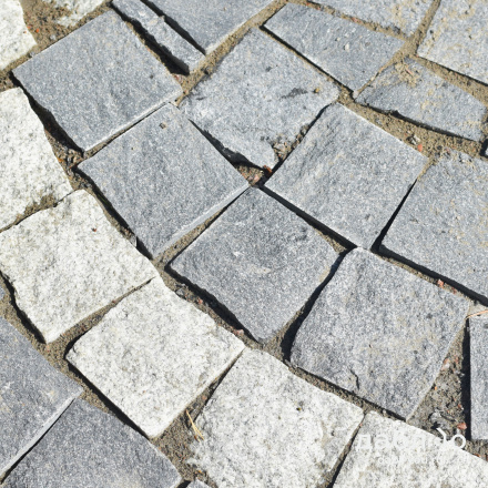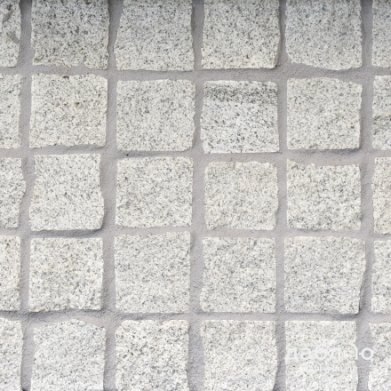 Гранитная брусчатка Мансуровская колотая размер 100х100х50 мм. Брусчатка из белого гранита с колотыми гранями для тротуаров и парковок. Подходит для частного сектора и городского мощения.- Область применения: мощение
