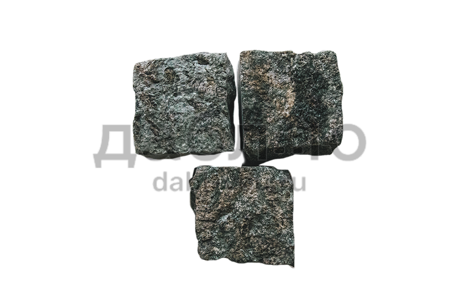 Гранитная брусчатка Сопка Бунтина пилено-колотая, размер 100х100х80 мм. Брусчатка темно-зеленного оттенка. Обладает высокой прочностью, низким водопоглощением, морозостойкая.- Область применения: мощение