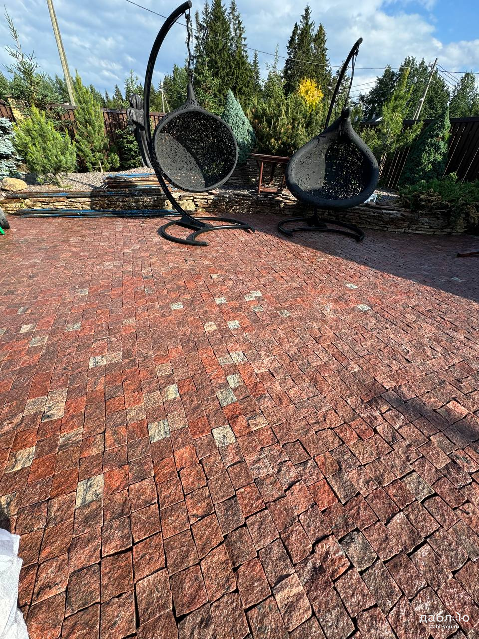 Гранитная брусчатка Сюскюянсаари пилено-колотая (2-4 пиленые боковые грани, верх колотый), размер 100х100х50 мм. Красивый гранит в красном цвете с вкраплениями серого и черного будет отлично смотреться на Вашем участке. Подходит для мощения пешеходных дорожек и парковок.- Область применения: мощение