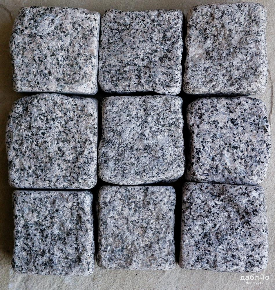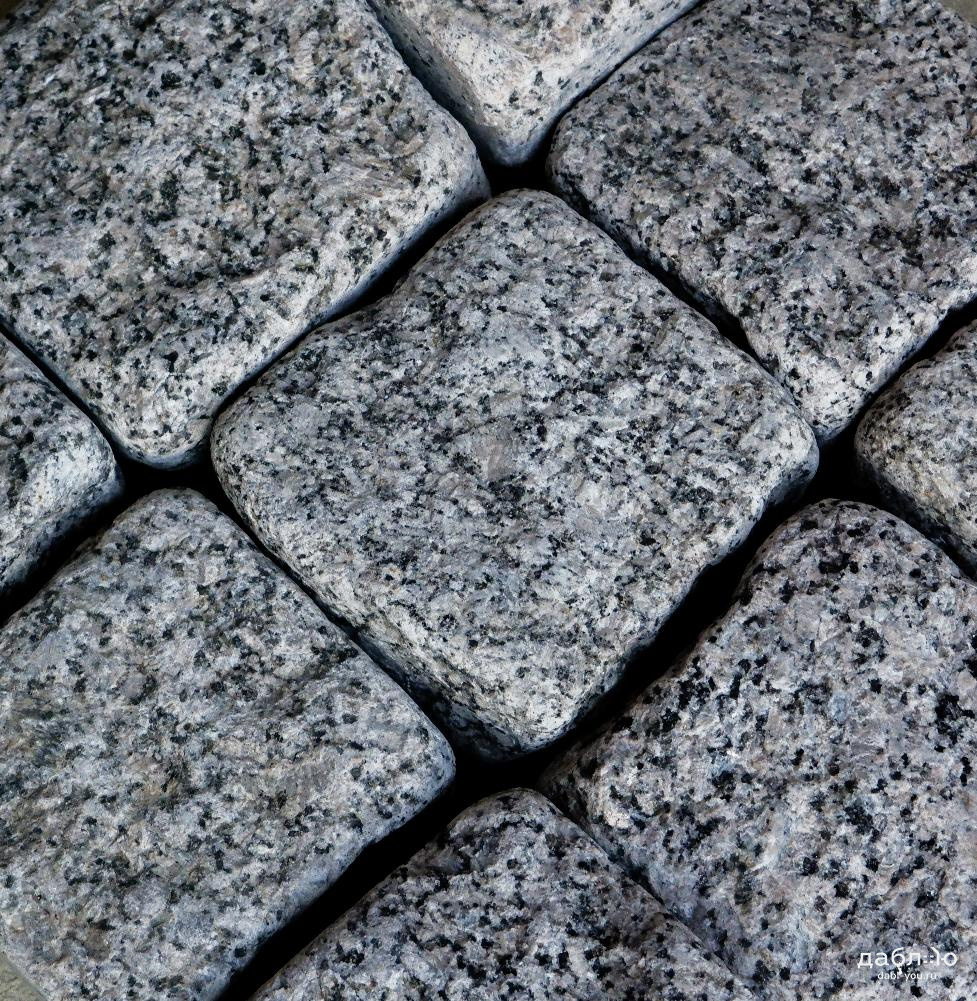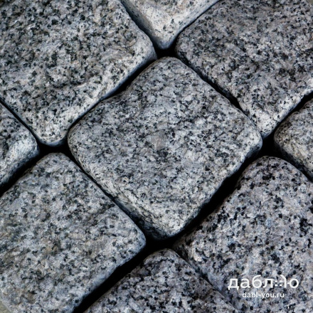 Гранитная брусчатка Возрождение галтованная, размер 100х100х50 мм. Классический вариант серой гранитной брусчатки с обработкой "под старину". Минимальное водопоглощение обеспечивает длительный срок службы материала. Подходит для мощения пешеходных дорожек и парковок.- Область применения: мощение