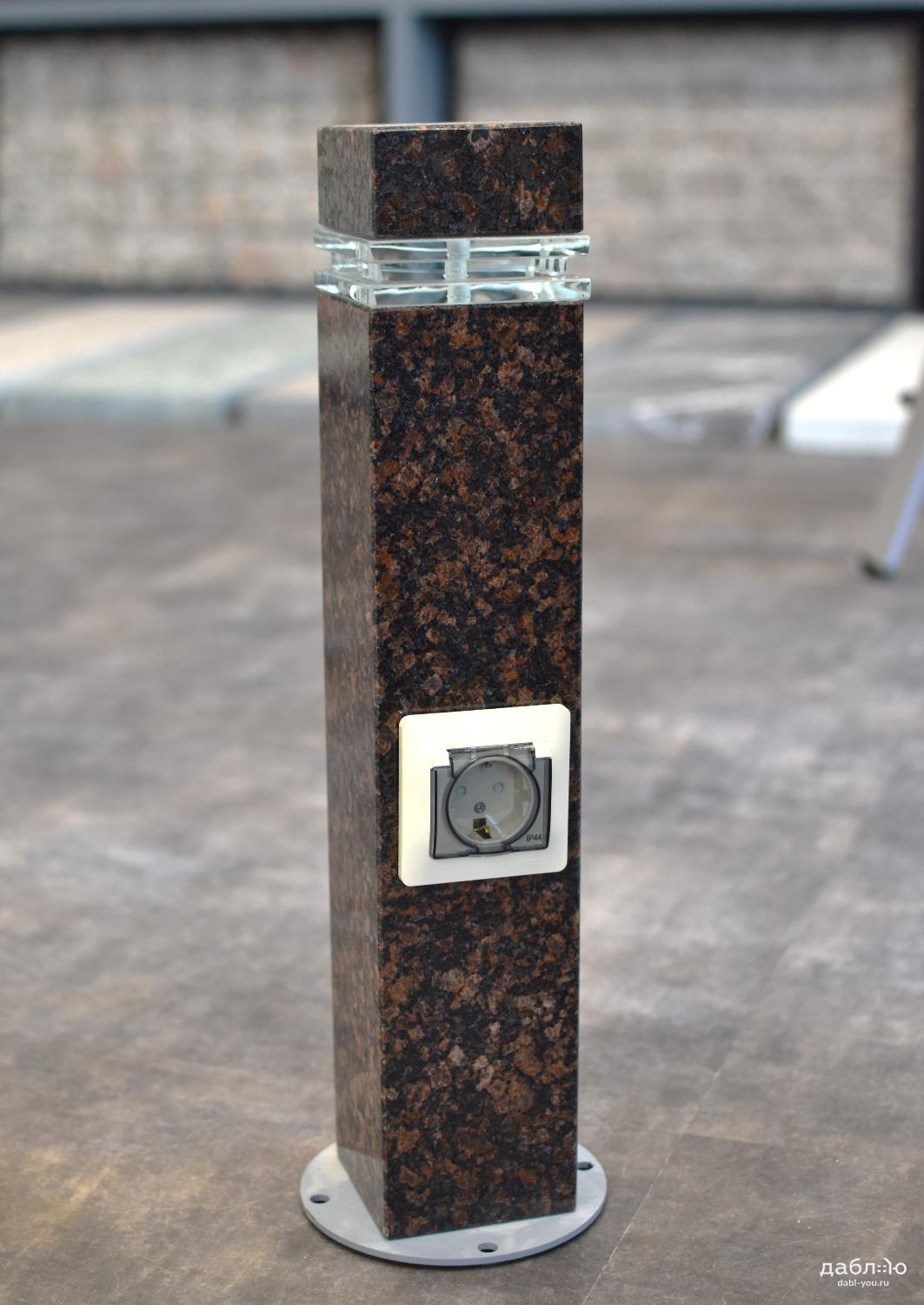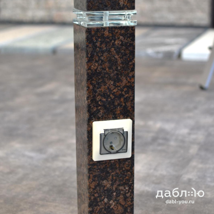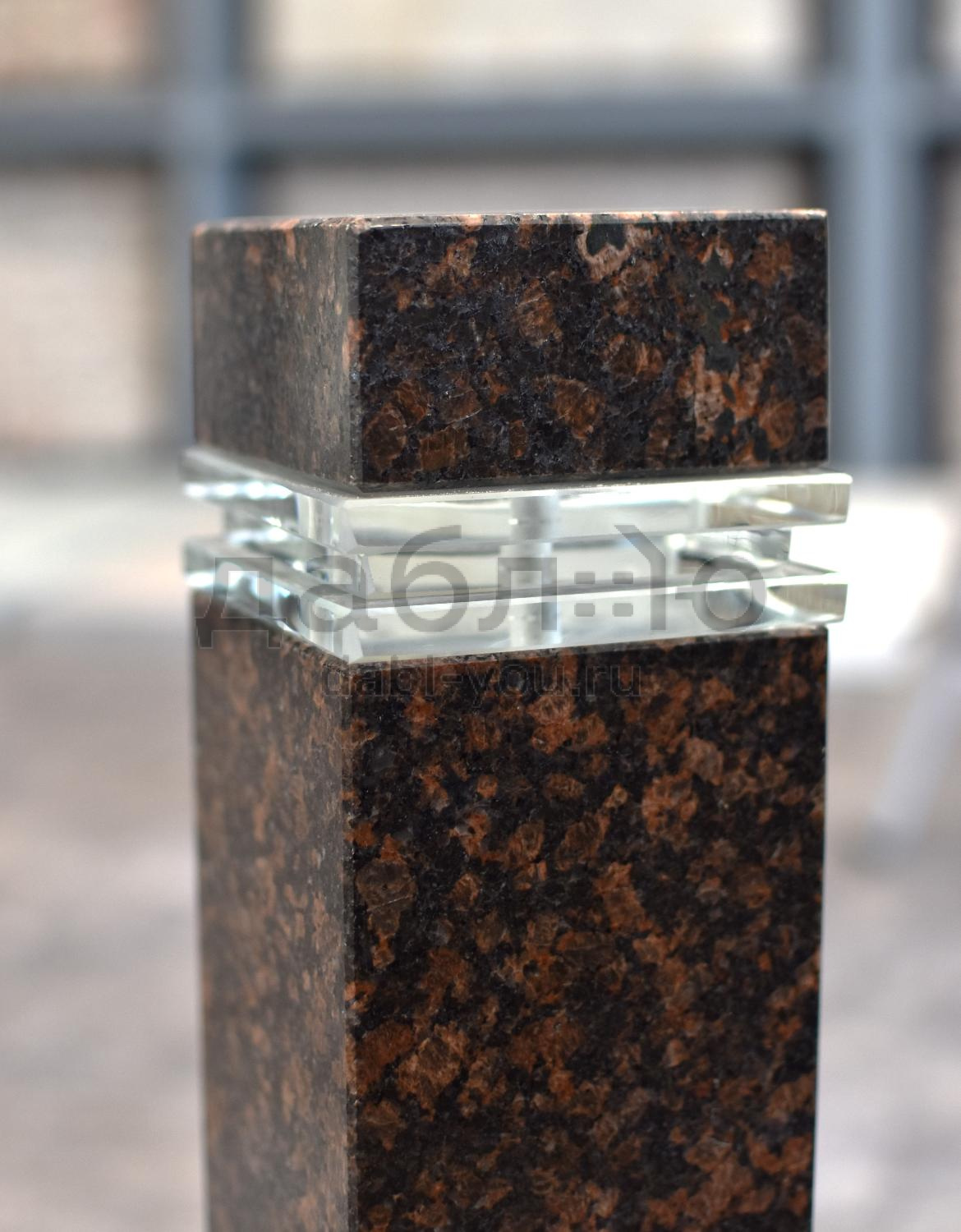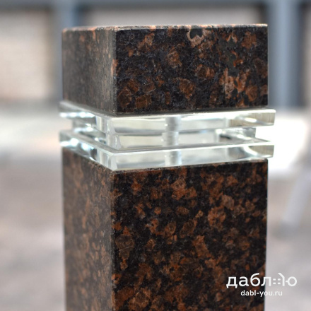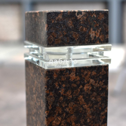 Гранитный светильник Дымовский лайт. Гранитные светильники — отличное дополнение к любому ландшафтному дизайну. Прочная конструкция и уникальный внешний вид делают их идеальным выбором для освещения дорожек и других наружных пространств.- Материал: гранит Дымовский, стекло