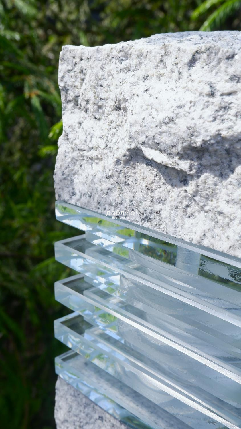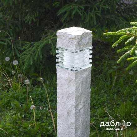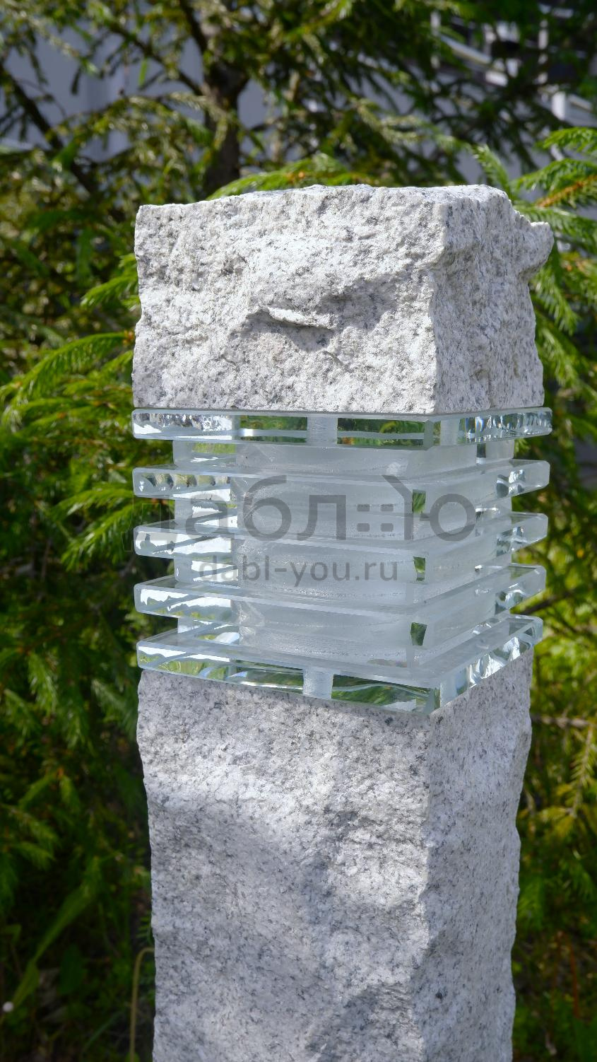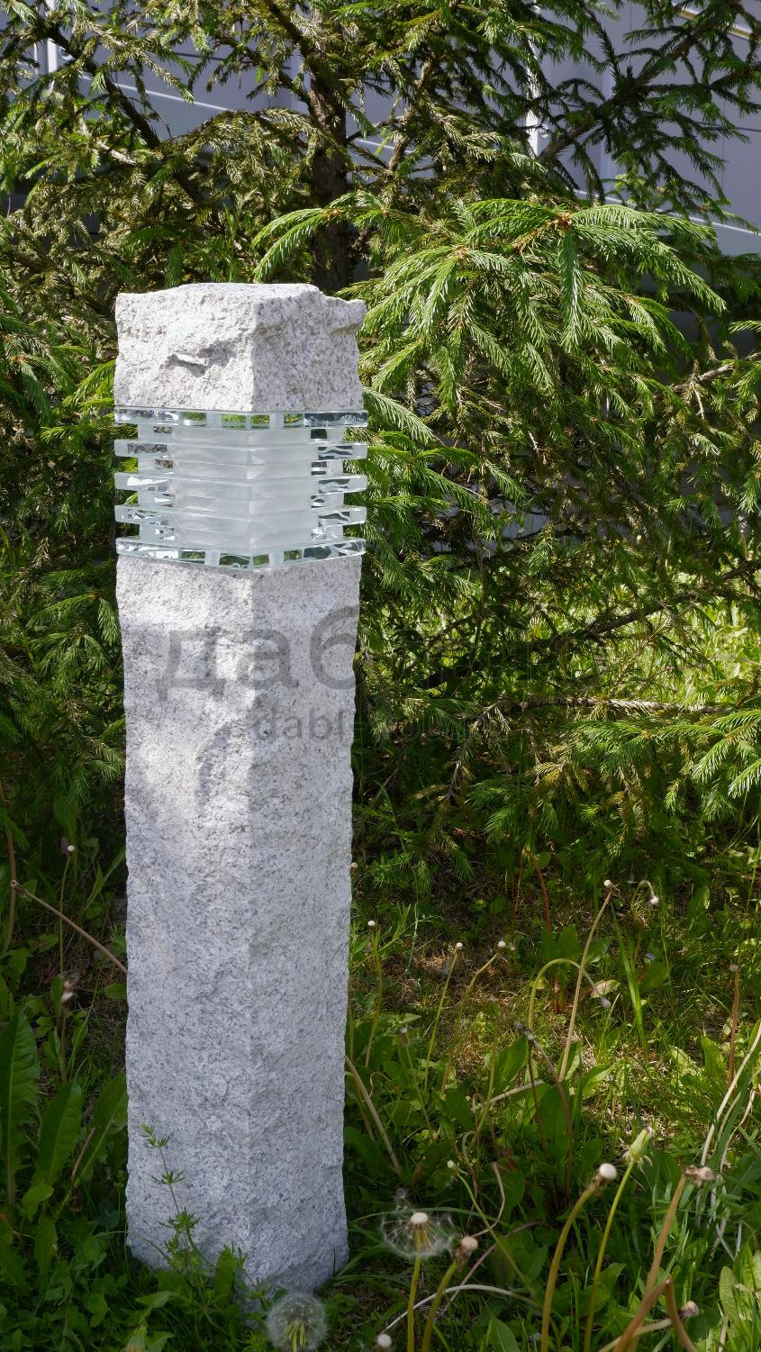 Гранитный светильник Мансуровский Рустик. Гранитные светильники — отличное дополнение к любому ландшафтному дизайну. Прочная конструкция и уникальный внешний вид делают их идеальным выбором для освещения дорожек и других наружных пространств.- Материал: Мансуровский гранит, стекло