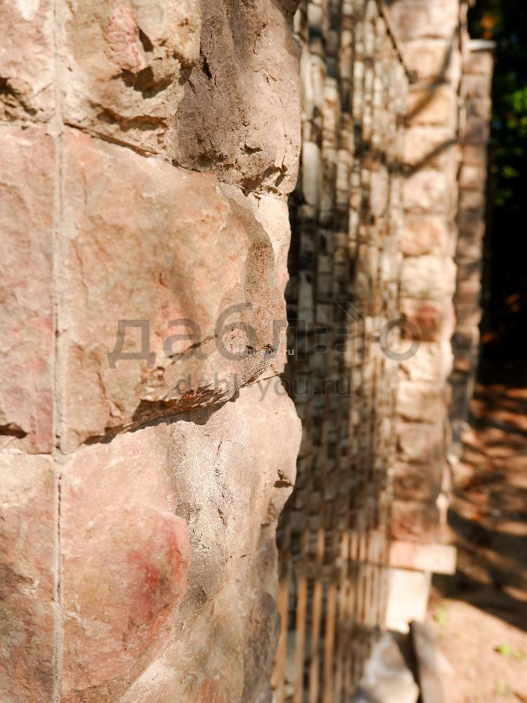 Известняк розовый/Доломит плитка 5-ти сторонняя с заколом 100*L погон*20-30 мм.