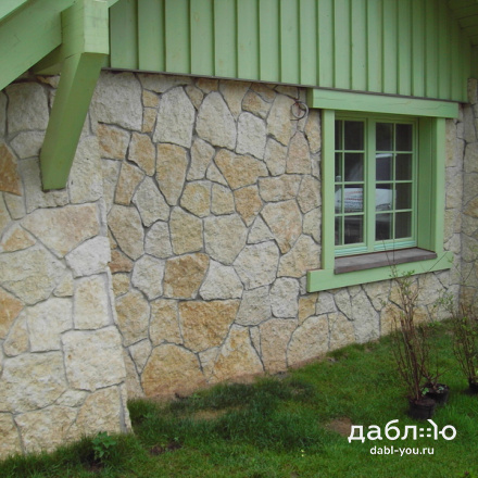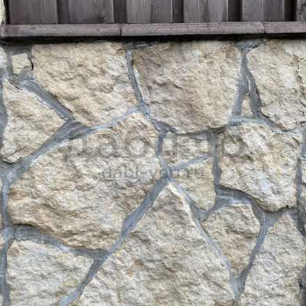 Известняк серо-желтый рваный край (1 срез) 20-30 мм. Известняк серо-желтый рваный край подойдет для облицовки фасада или цоколя дома, а также внутри помещений. Спокойный желтый оттенок камня будет прекрасно сочетаться со многими строительными материалами.Толщина: 20-30 мм.