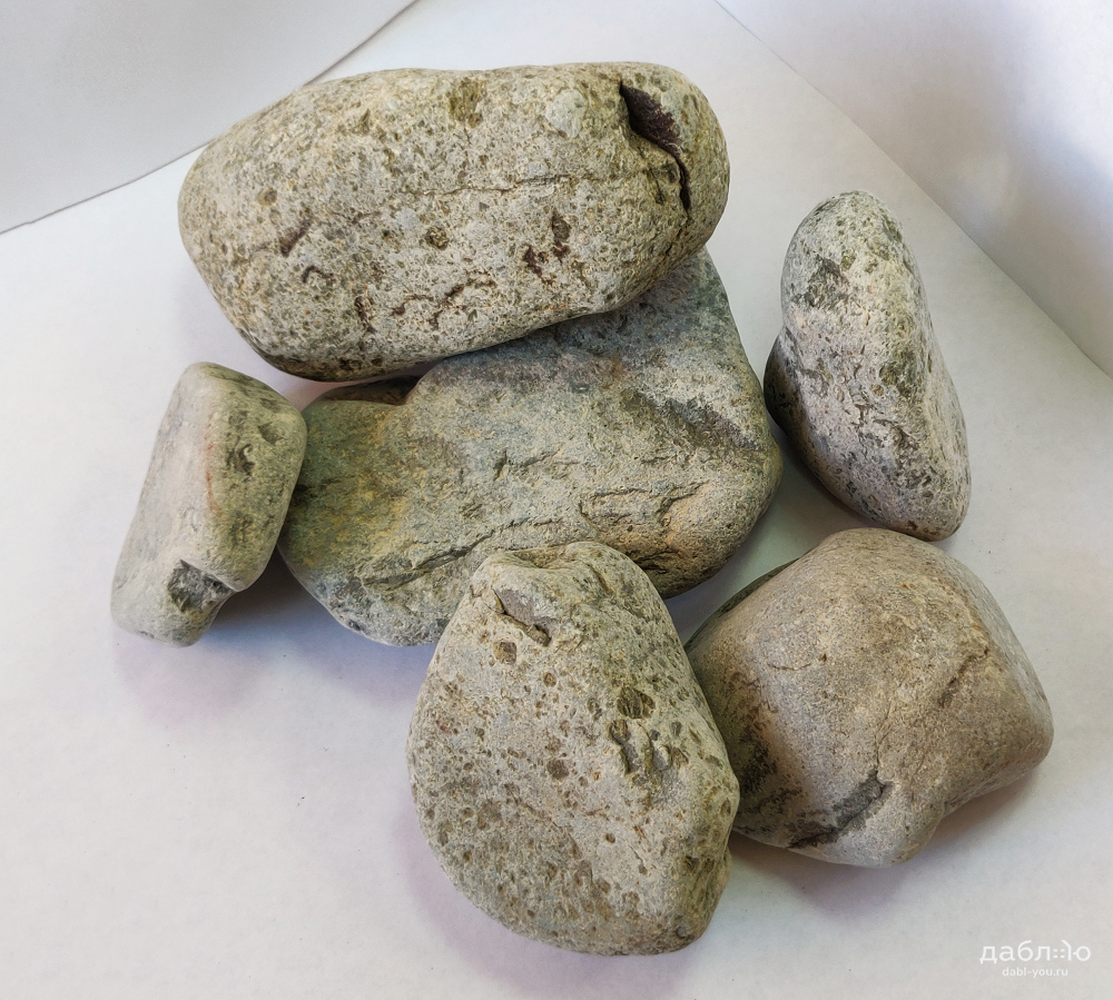 Камень банный порфирит галтованный 70-150. Этот серый камень применяется для бань и саун как декоративный элемент. Он отлично долго сохраняет тепло, выдерживает высокие температуры и воздействие горячей воды.Отпускается кратно упаковкам!