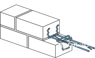 Горизонтальная перемычка. Самым простым типом кладки для перемычек является горизонтальная кладка. Она ничем не отличается от остального фасада. Основным условием является то, что кирпич первого ряда должен быть полнотелым. Выполнение этого условия обеспечит красоту, законченность перемычки со всех сторон и с фасада, и снизу. При монтаже горизонтальной перемычки используются хомуты SK 50-40 и SU 50-45.
