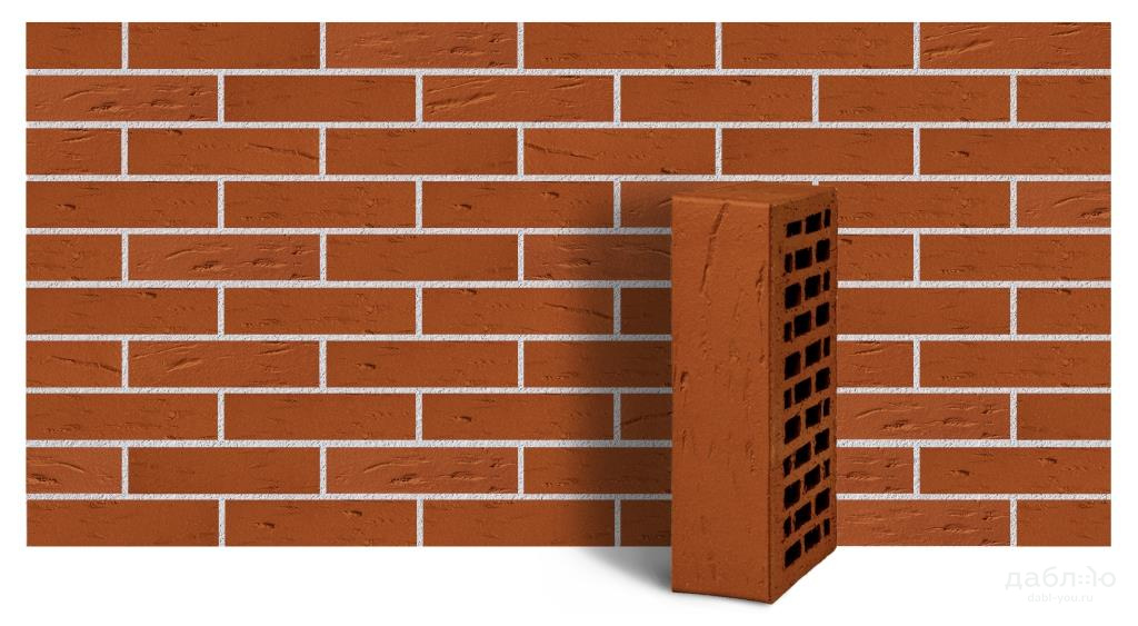 Кирпич керамический лицевой ЛСР красный рустик, 250х120х65 мм