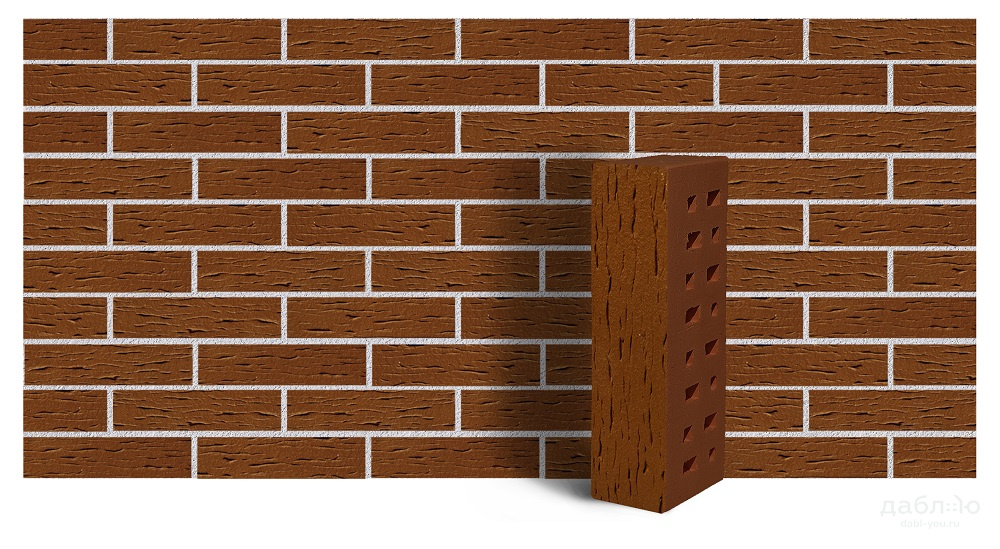Кирпич облицовочный ЛСР "Эдинбург" тёмно-красный береста, 250х85х65 мм