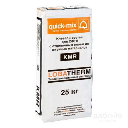Клеевой состав для утеплителя для СФТК с отделочным слоем из штучных материалов Quick-Mix KMR, 25 кг. Минеральный клеевой состав для приклеивания фасадных пенополистирольных и минераловатных плит в СФТК с керамической облицовкой, а также для приклеивания экструдированного полистирола на цоколях зданий. Высокая адгезионная способность.- Прочность на сжатие ˃ 10 МПа