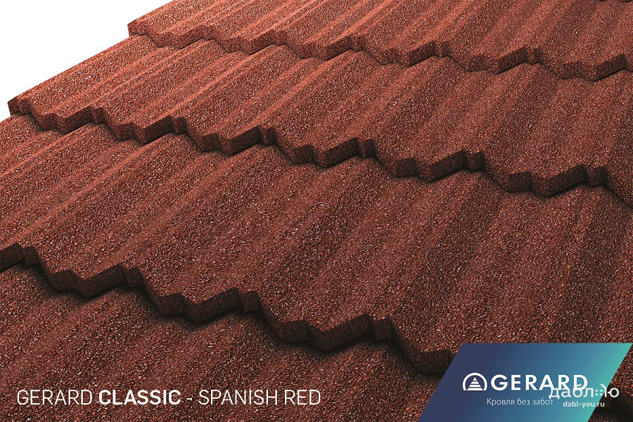 Композитная черепица Gerard Classic Spanish Red, 1265х369 мм. При создании коллекции Classic производители вдохновлялись крышами домов старого света, что придает ей интересный вид. Коллекция представлена 13 различными цветами, от серого до коричневого, чтобы помочь подобрать максимально подходящий для Вас цвет.Размер: 1265х369 мм