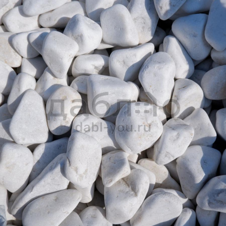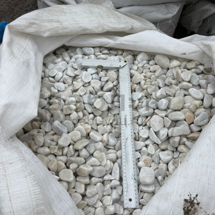 Крошка Мраморная белая галтованная 20-40 мм. Мраморная крошка чистого белого цвета с небольшими примесями в галтованной обработке. Будет выглядеть еще эффектнее в сочетании с крошкой черного цвета. Можно применять в ландшафтном дизайне и интерьере.- Отгрузка позиции производится со склада!