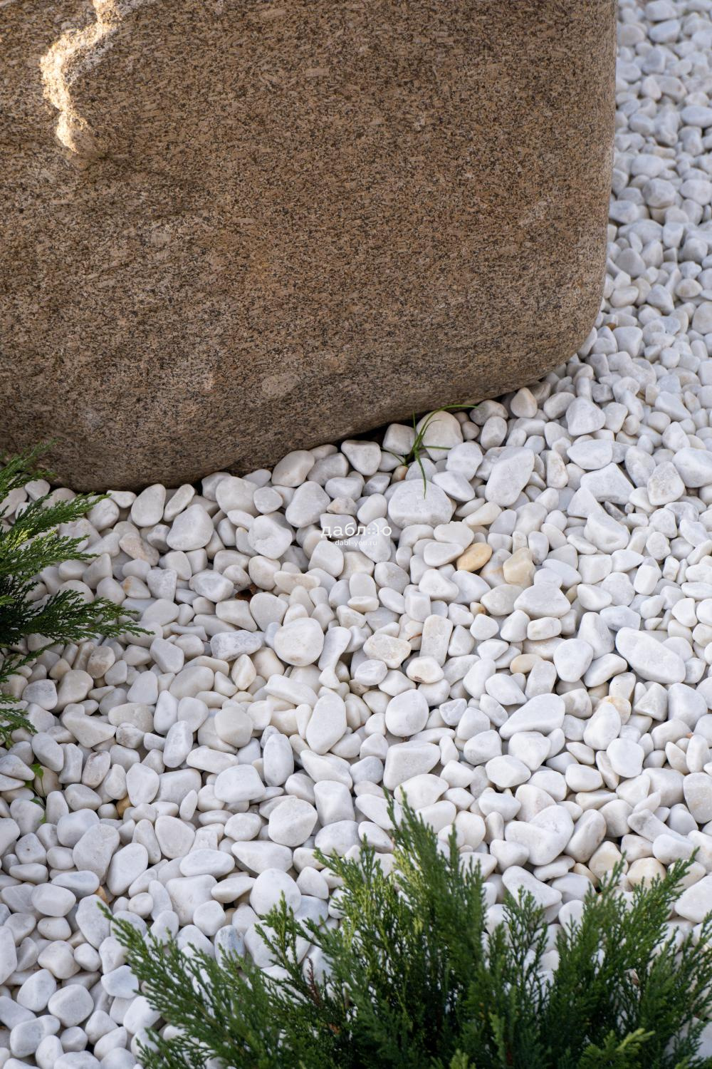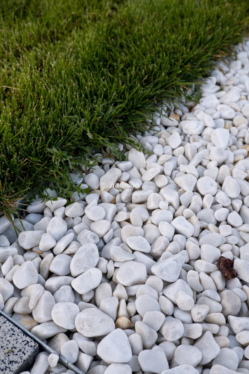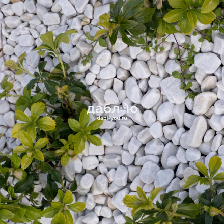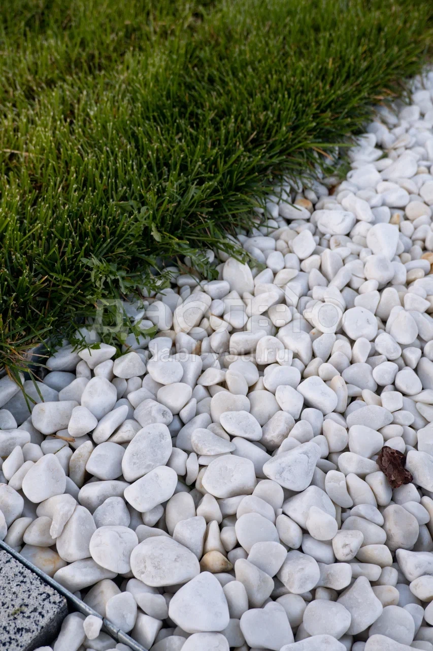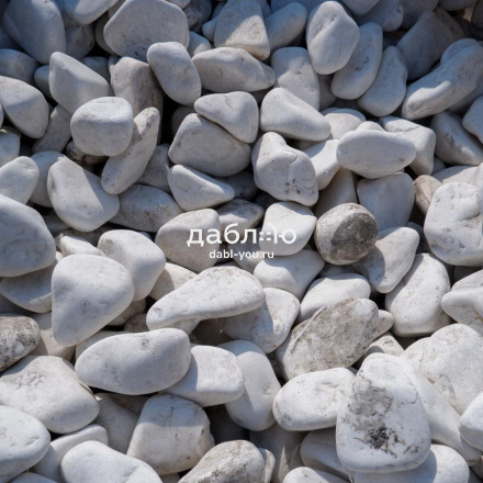 Крошка Мраморная белая галтованная 40-70 мм. Мраморная крошка чистого белого цвета с небольшими примесями в галтованной обработке. Будет выглядеть еще эффектнее в сочетании с крошкой черного цвета. Можно применять в ландшафтном дизайне и интерьере.- Отгрузка позиции производится со склада!