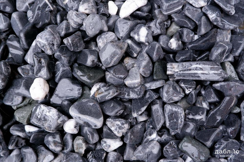 Крошка Мраморная черная галтованная 20-40 мм. Мраморная крошка - это дробленый на фракции мрамор, еще одно название - мраморный щебень. Крошка имеет технические характеристики, присущие материалу. из которого она изготавливается: высокая прочность и морозостойкость, низкое водопоглощение.- Отгрузка позиции производится со склада!
