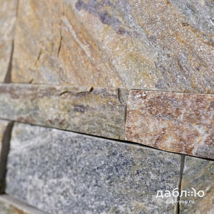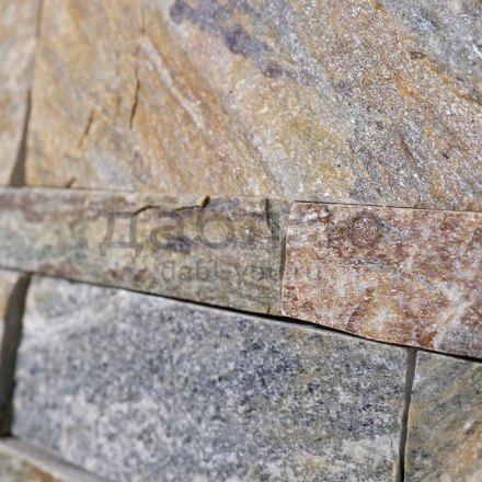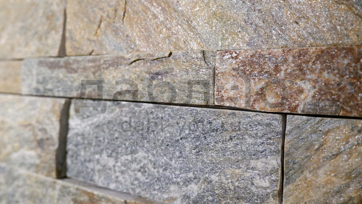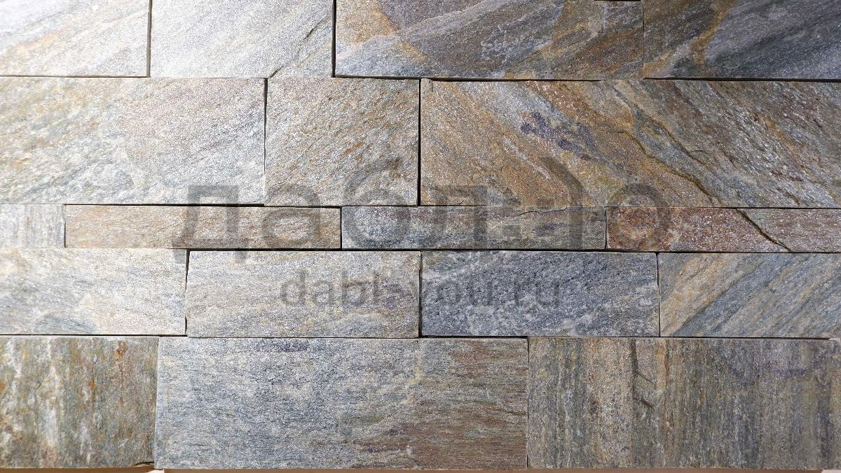 Кварцит серицит полоска торцованая 80хLx10-25. Кварцит считается экологически чистым материалом, поэтому его можно использовать как на фасаде Вашего дома, так и внутри помещений. Цвет камня выглядит очень изящно и благородно и легко сочетается с другими материалами.Толщины: 10-25 мм