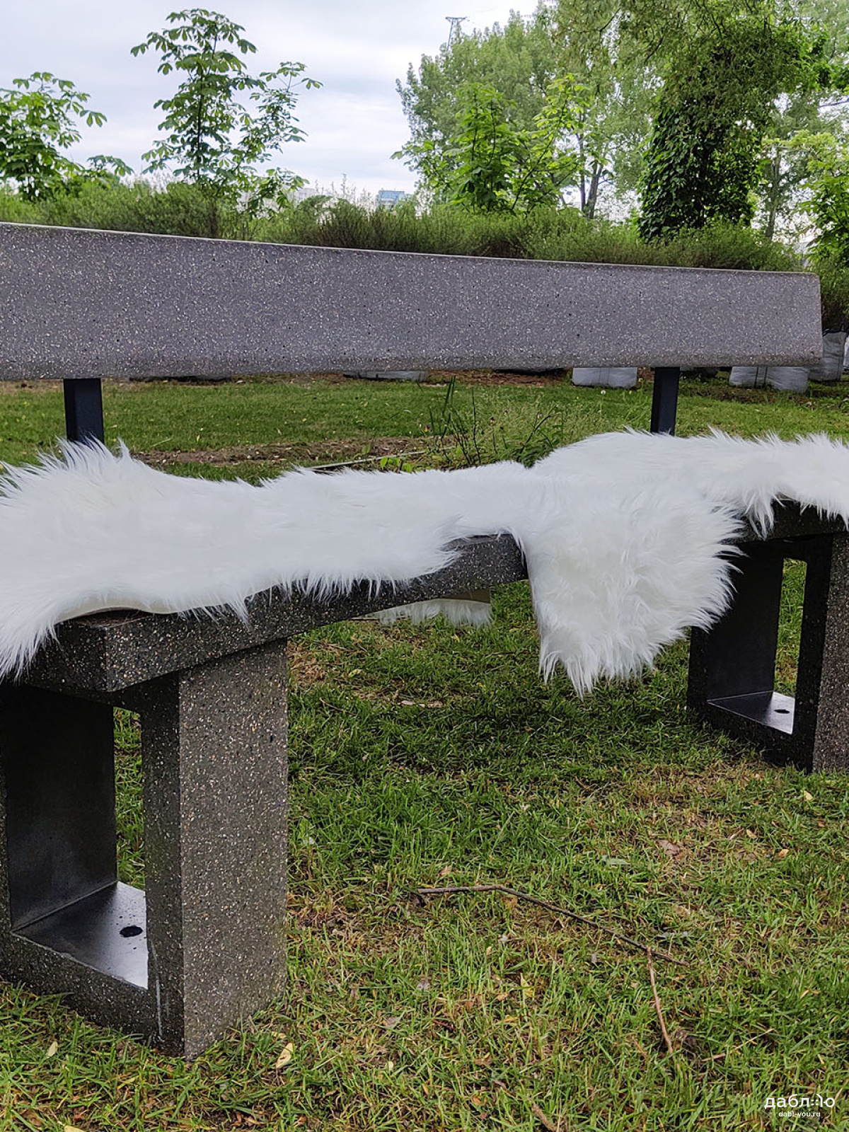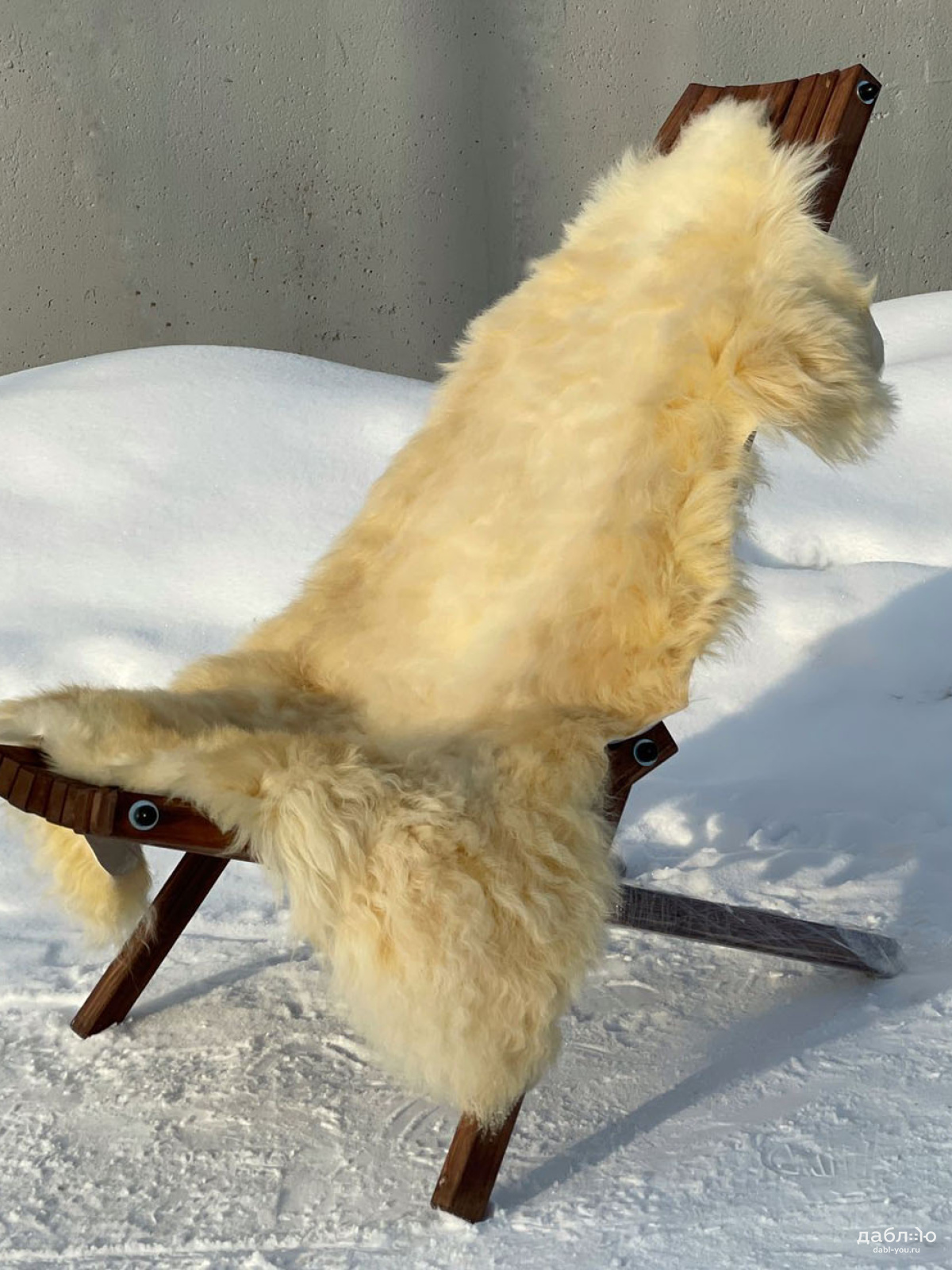 Овечья шкура Concretika. Натуральная овечья шкура, которую можно положить на уличное кресло или скамью в качестве элемента декора и для защиты от соприкосновения с холодной поверхностью. Натуральные цвета сливочных и светло-бежевых оттенков, длина ворса минимум 4 см.Материал: овчина