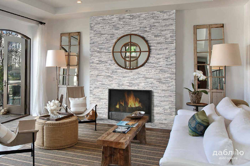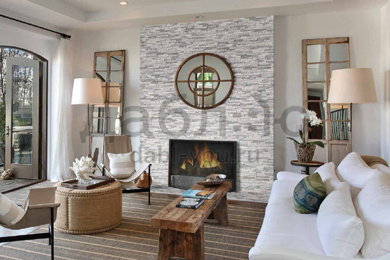 Панель из натурального камня Классик Кварцит бело-серый