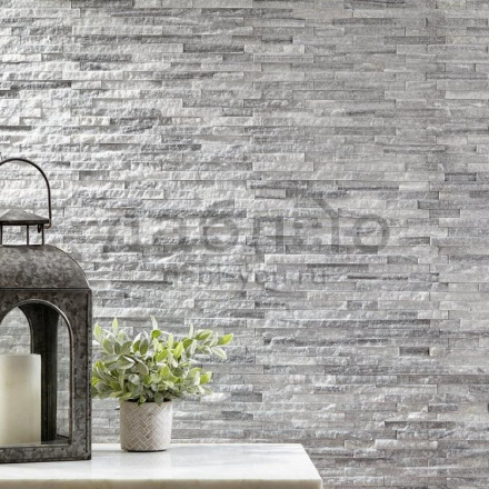 Панель из натурального камня Классик Кварцит бело-серый. Данная панель представляет собой единую плитку, состоящую из склеенных кусочков натурального камня. Благодаря неровной поверхности достигается "объем" природного материала. Эти панели представлены в различных цветах и размерах, что дает возможность подобрать материал на Ваш вкус и цвет.- Длина: 600 мм