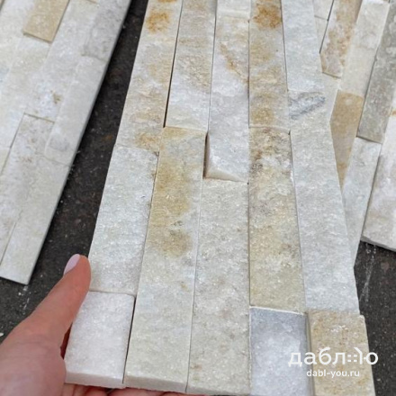 Панель из натурального камня Классик Кварцит бежевый. Данная панель представляет собой единую плитку, состоящую из склеенных кусочков натурального камня. Благодаря неровной поверхности достигается "объем" природного материала. Эти панели представлены в различных цветах и размерах, что дает возможность подобрать материал на Ваш вкус и цвет.Длина: 600 мм