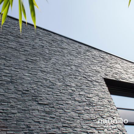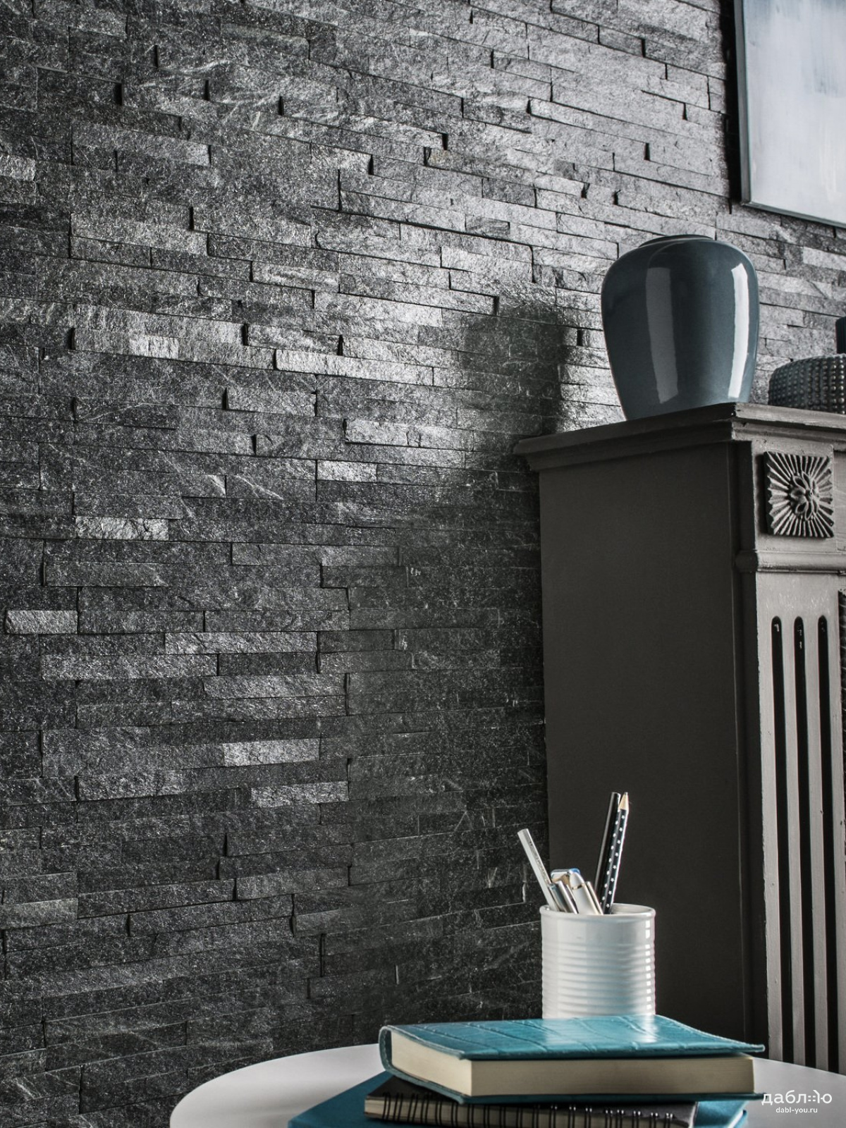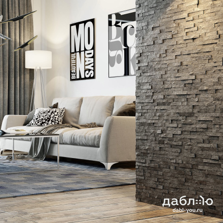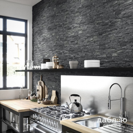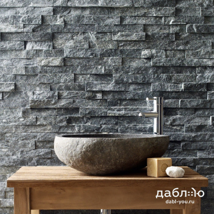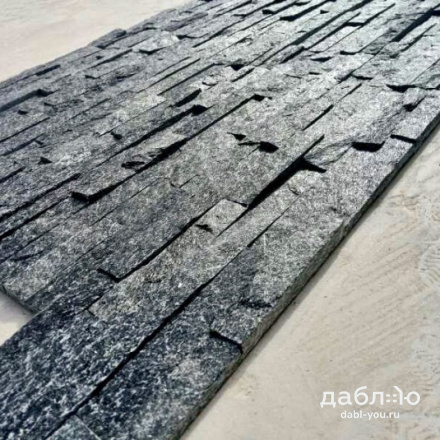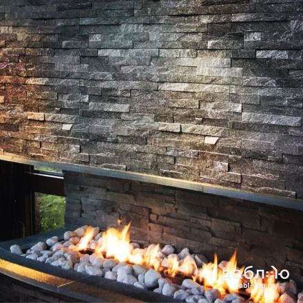Панель из натурального камня Классик Кварцит черный. Данная панель представляет собой единую плитку, состоящую из склеенных кусочков натурального камня. Благодаря неровной поверхности достигается "объем" природного материала. Эти панели представлены в различных цветах и размерах, что дает возможность подобрать материал на Ваш вкус и цвет.Длина: 600 мм