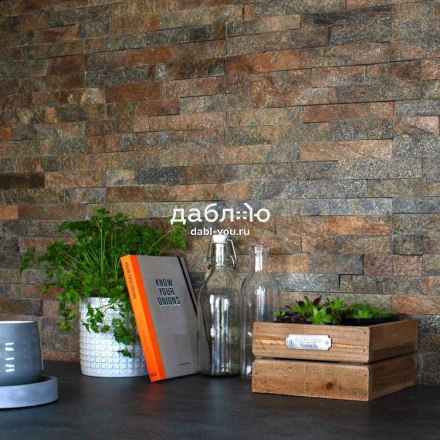 Панель из натурального камня Классик Кварцит мультиколор. Данная панель представляет собой единую плитку, состоящую из склеенных кусочков натурального камня. Благодаря неровной поверхности достигается "объем" природного материала. Эти панели представлены в различных цветах и размерах, что дает возможность подобрать материал на Ваш вкус и цвет.Длина: 600 мм