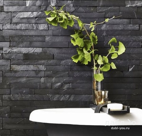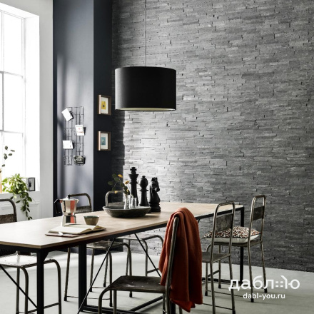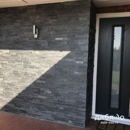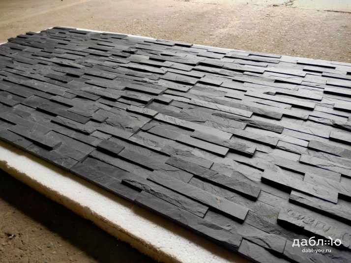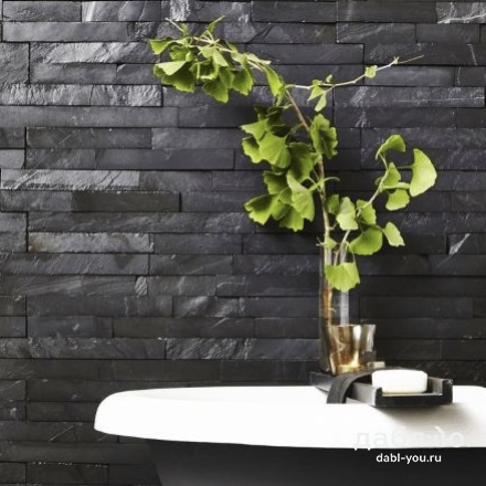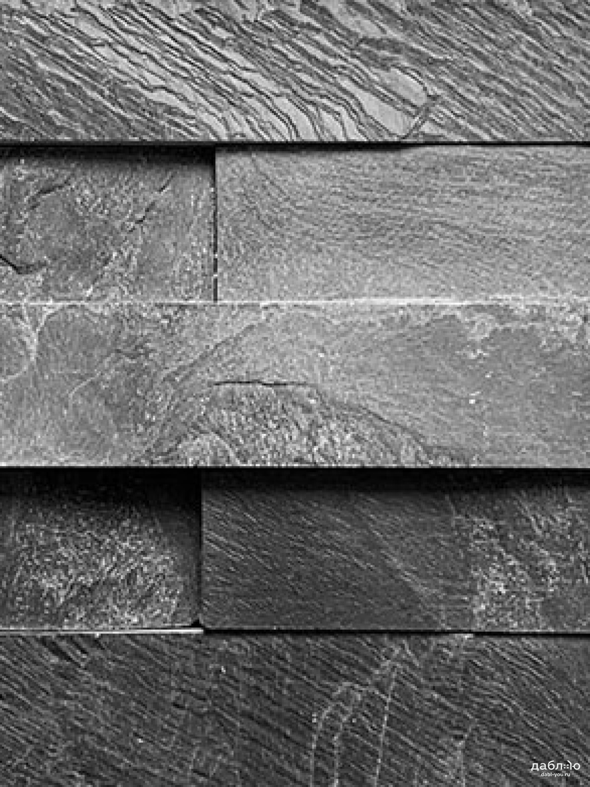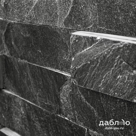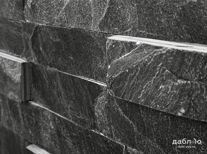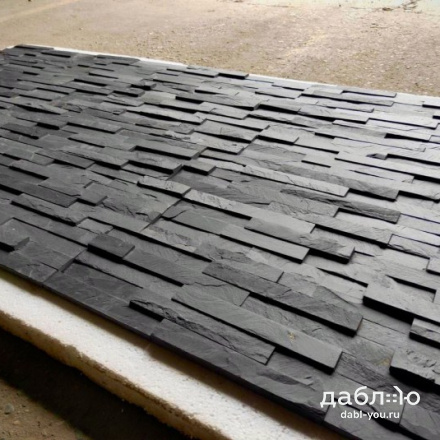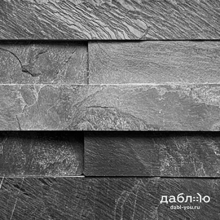 Панель из натурального камня Классик Сланец черный. Данная панель представляет собой единую плитку, состоящую из склеенных кусочков натурального камня. Благодаря неровной поверхности достигается "объем" природного материала. Эти панели представлены в различных цветах и размерах, что дает возможность подобрать материал на Ваш вкус и цвет.Длина: 600 мм